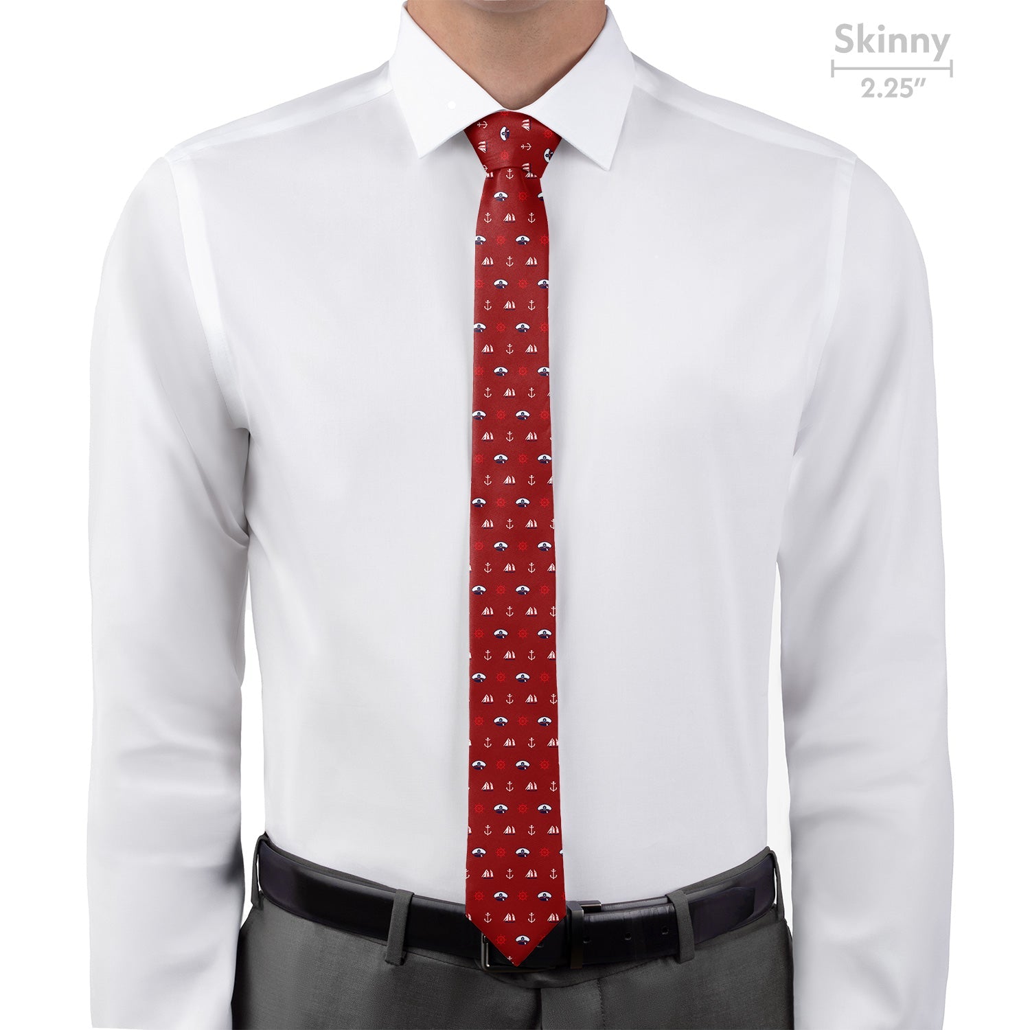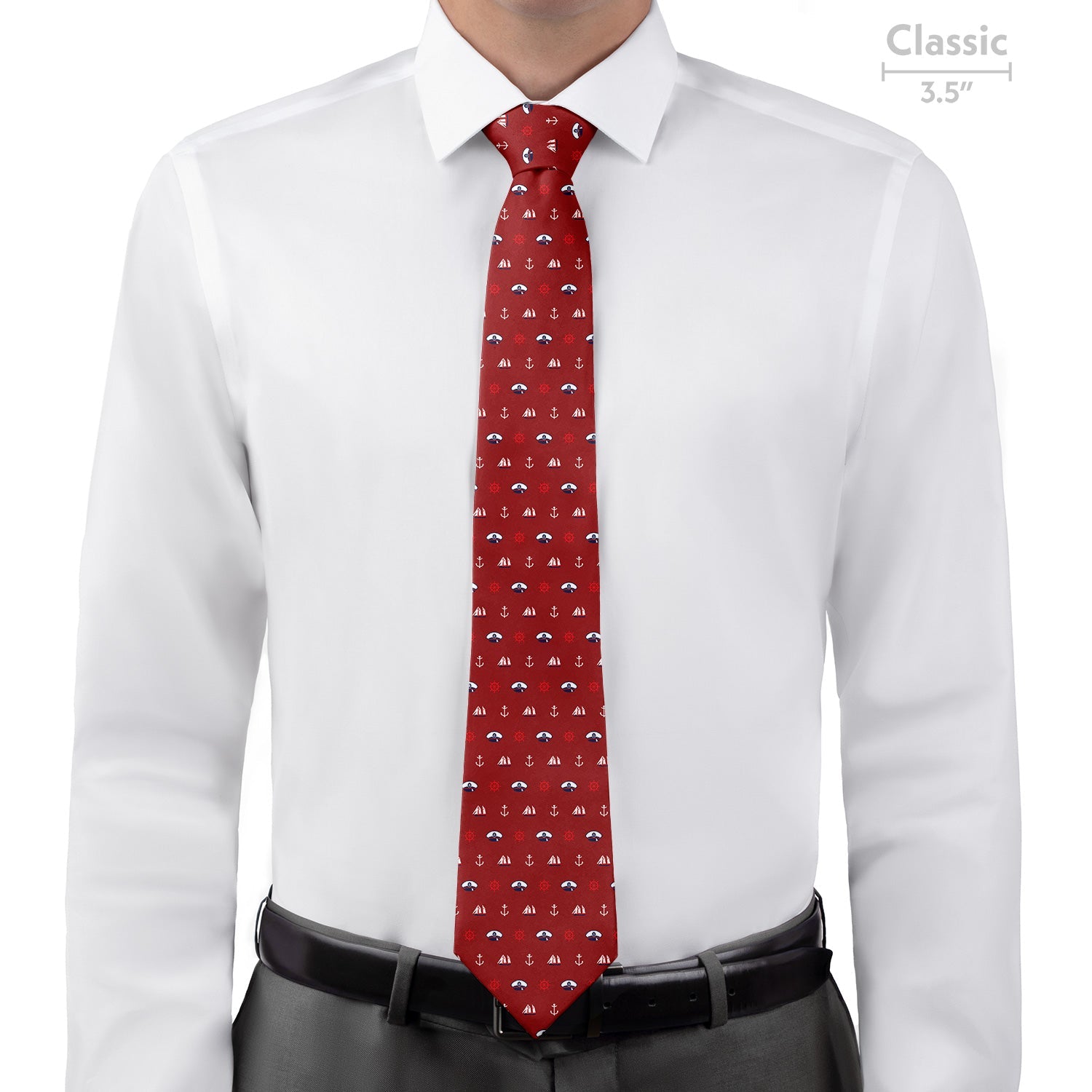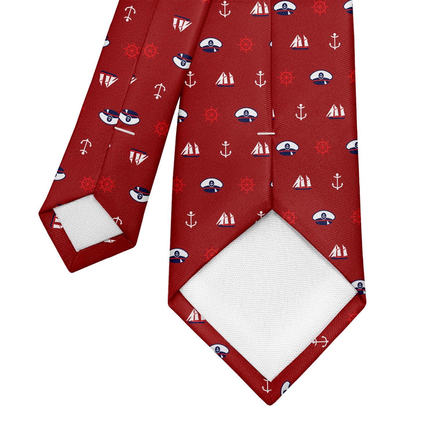 Celebrate naval history with the Ahoy necktie. Festooned with Navy hats, old sailing ships, anchors, and ship's wheels, this Navy tie has a charming nautical spirit.