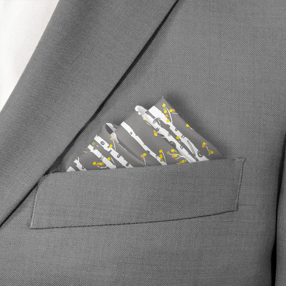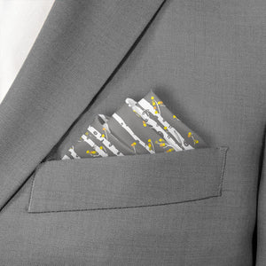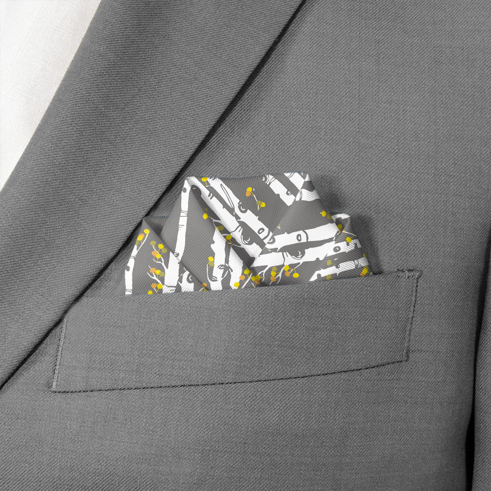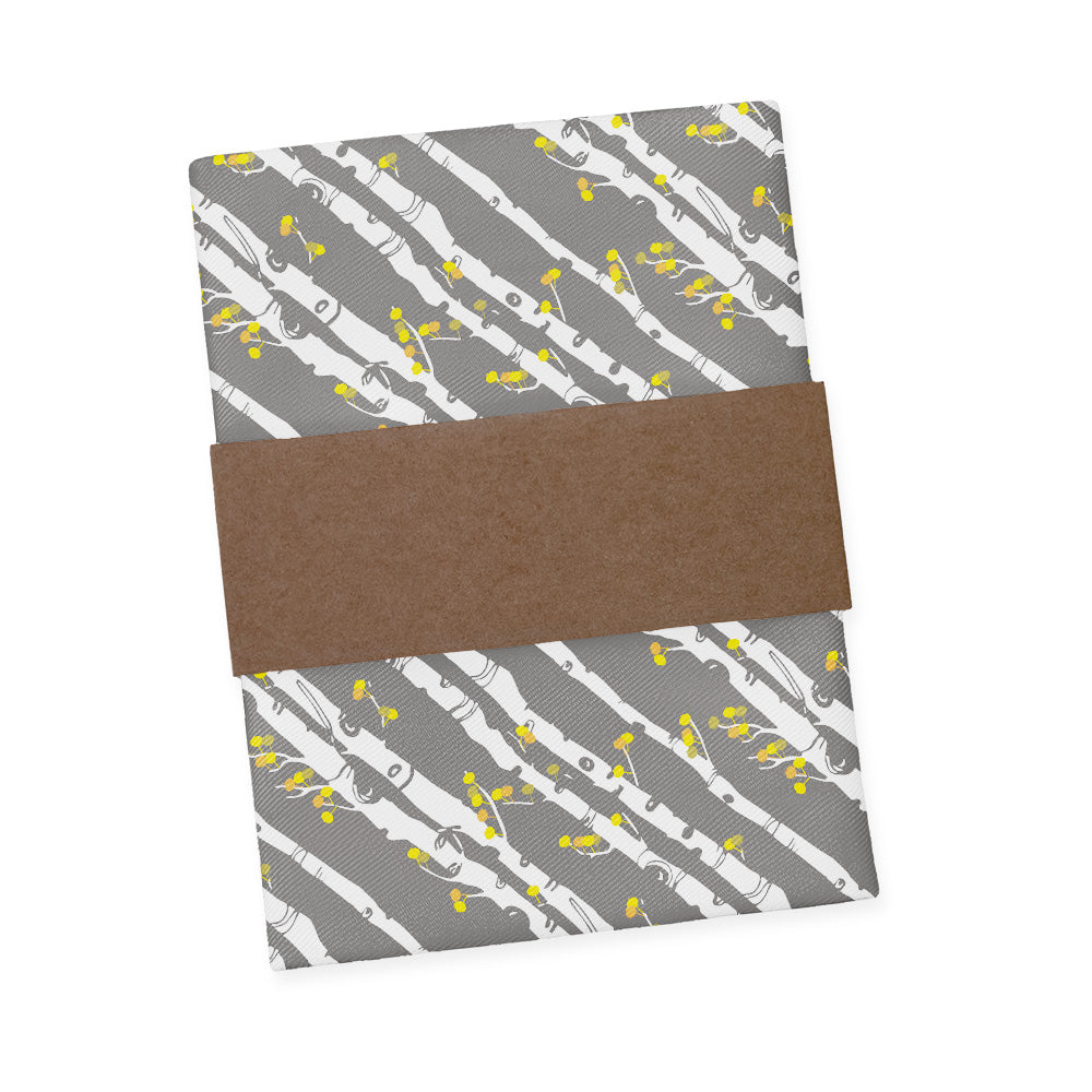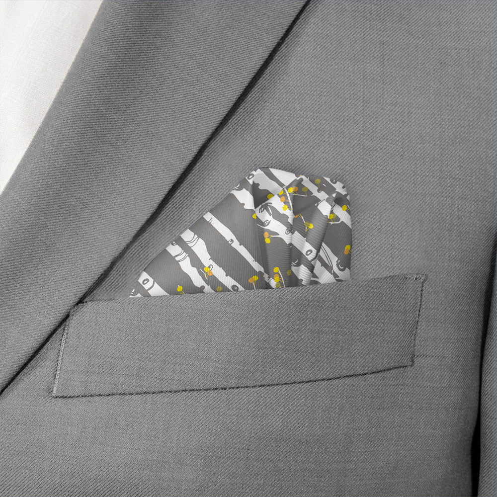 This nature inspired pocket square evokes the serenity of an aspen grove, bringing a dose of peace and tranquility to even the most fast-paced office. Classic diagonal stripes get an organic twist with distinctive aspen bark trunks sporting bright leafy branches.