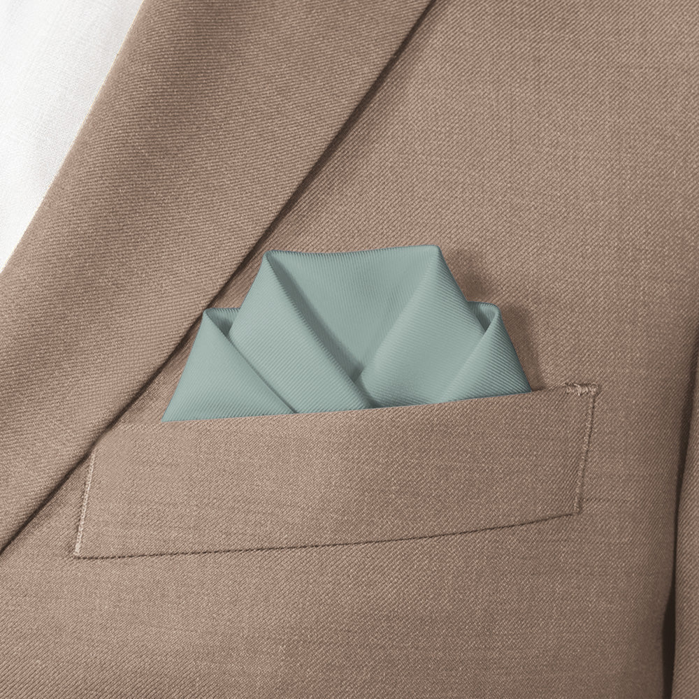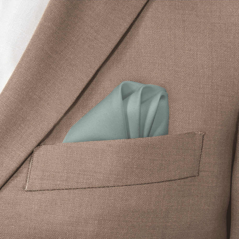 Elegant dove gray takes on the quiet renewal of pale green in this muted solid gray-green wedding pocket square, matched to Azazie's Agave.