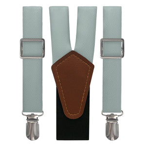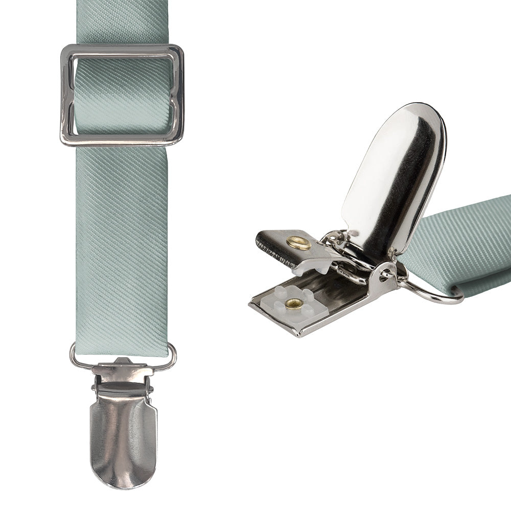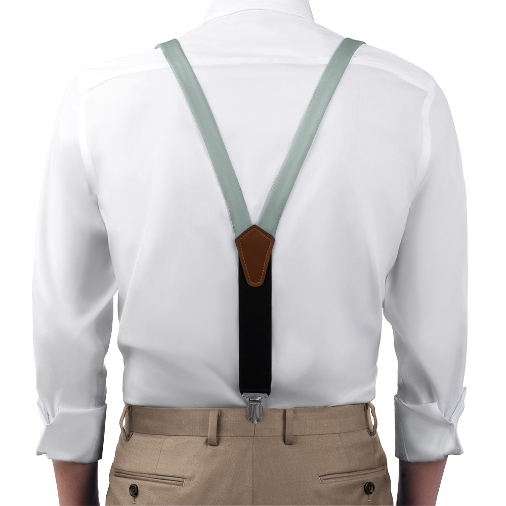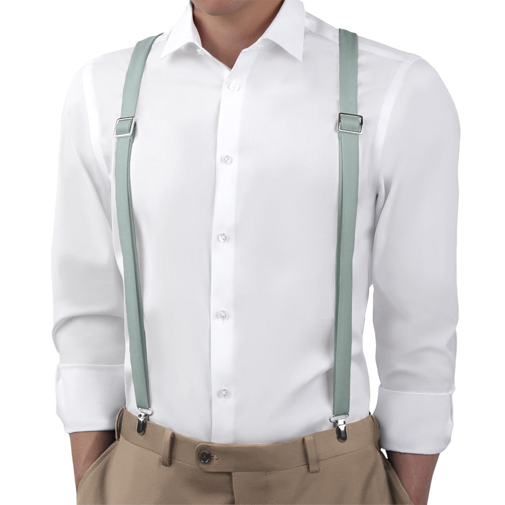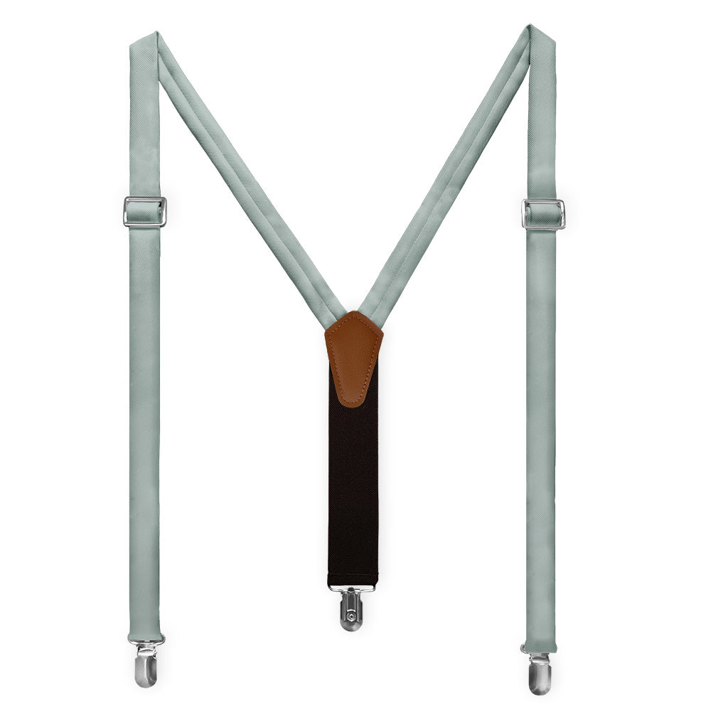 Elegant dove gray takes on the quiet renewal of pale green in this muted solid gray-green wedding suspenders, matched to Azazie's Agave.