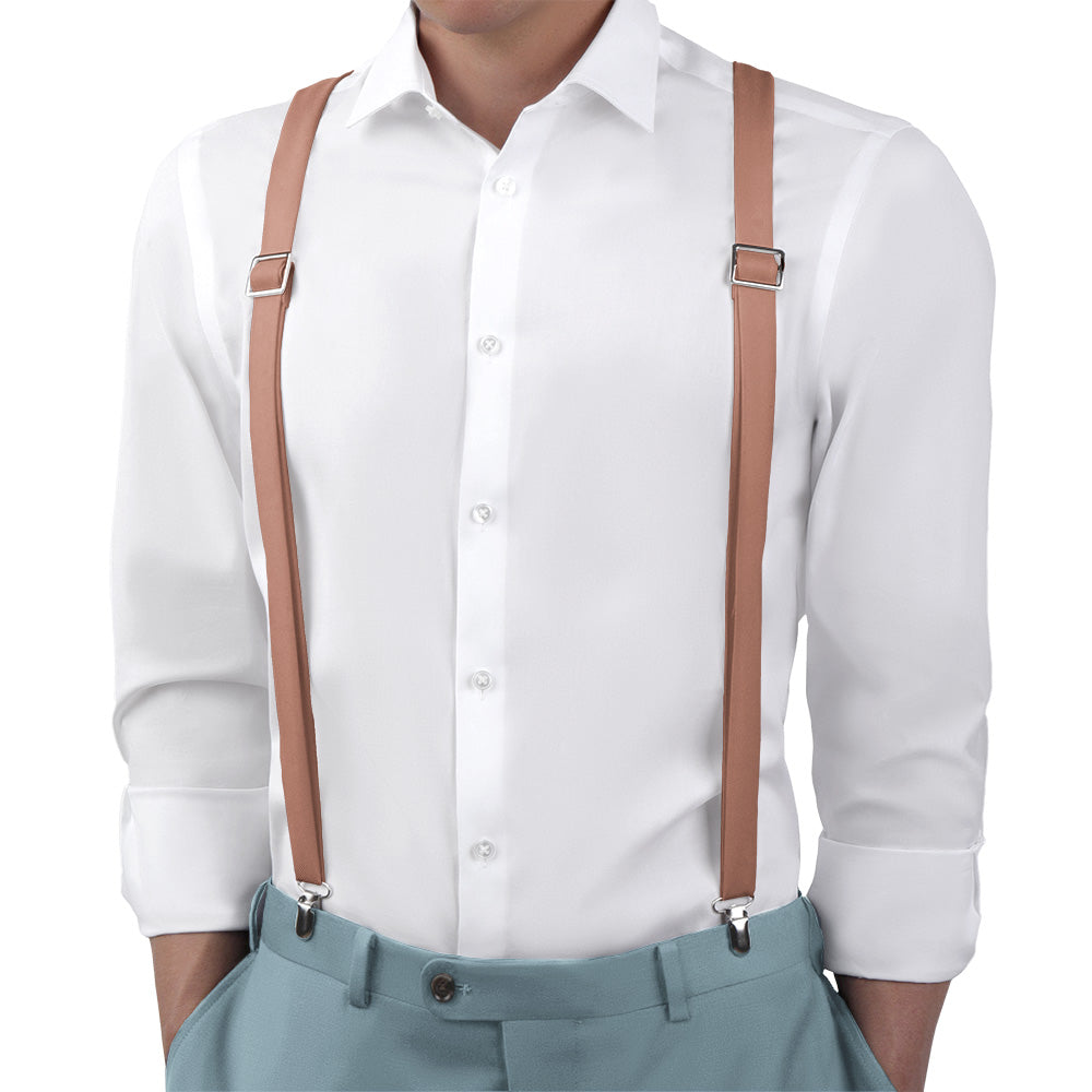 Printed fabric straps are 1-inch wide and secured to an elastic rear strap with vegan leather Y-back to allow the suspenders to move with you and extend as you bend. We use silver alligator pant clips that feature a special mechanism to ensure the suspenders clamp securely to pants.