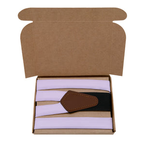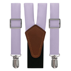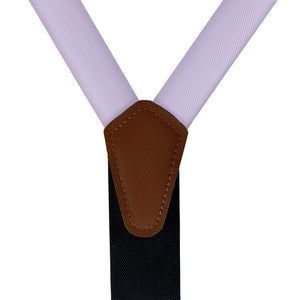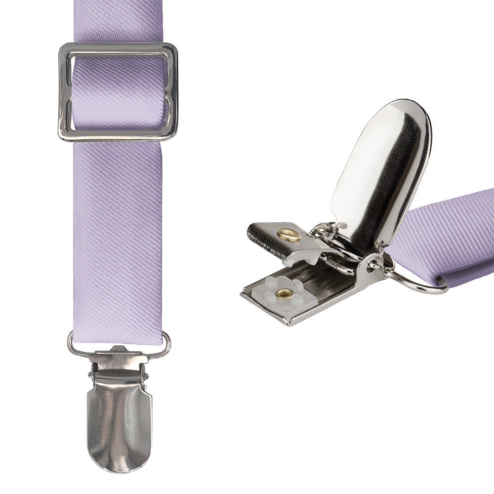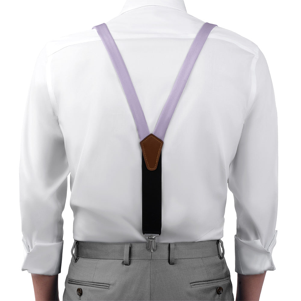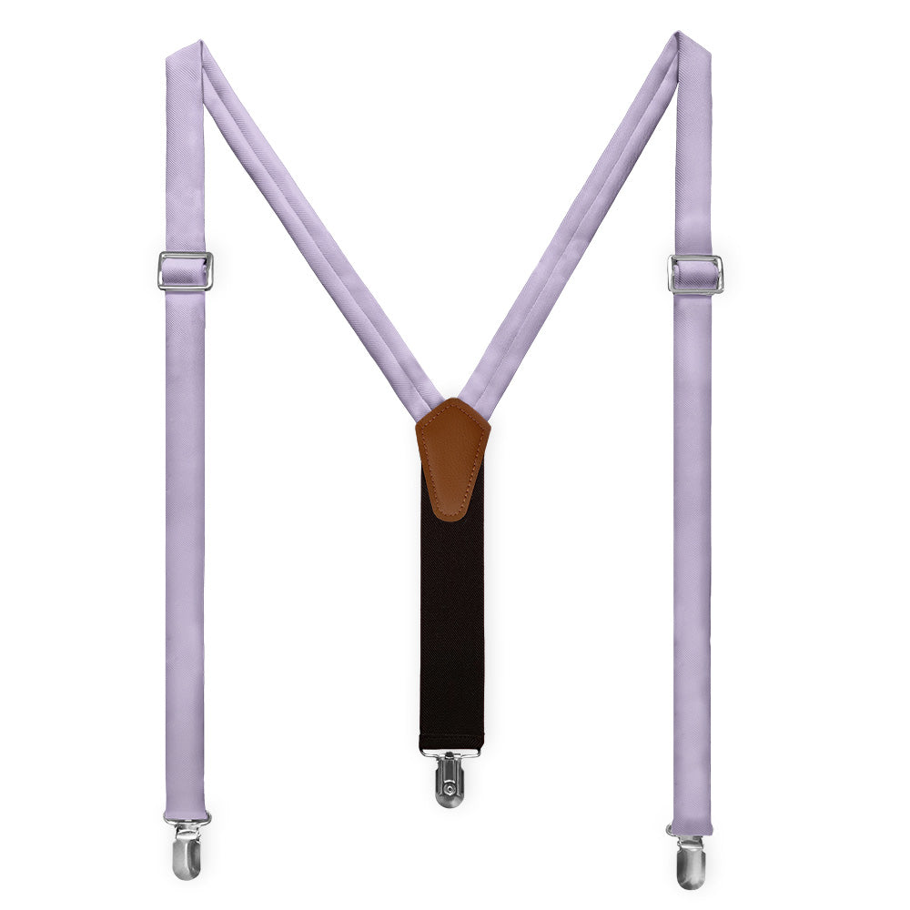 Solid pale purple suspenders convey style and creativity, like these ones matched to Azazie Lilac.
