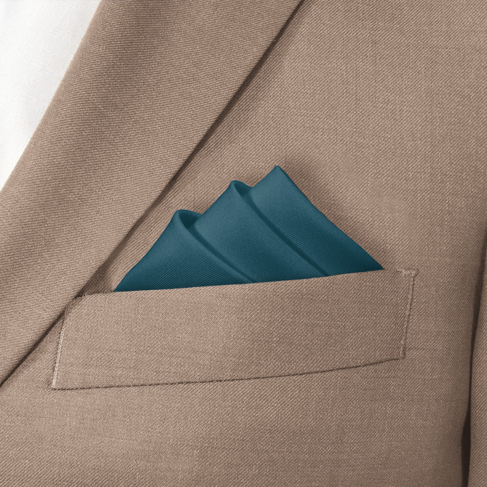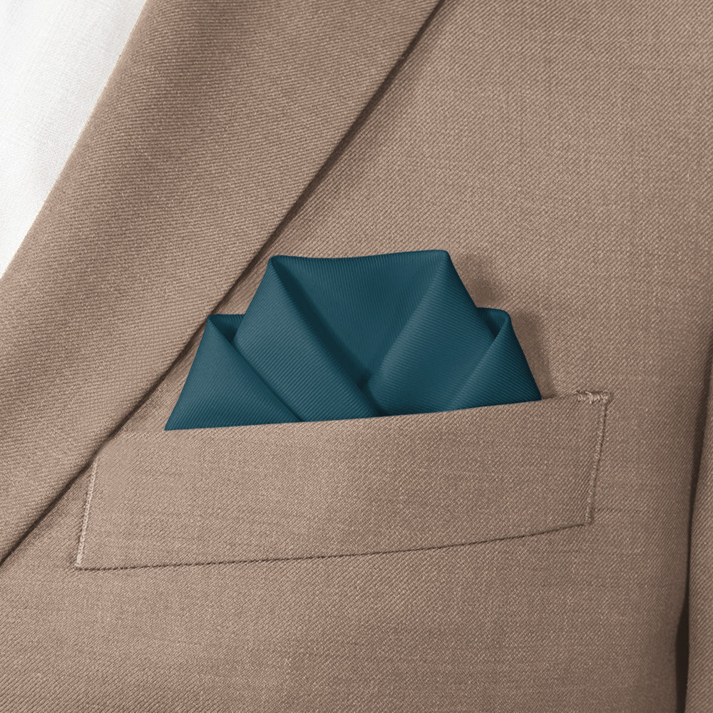 Peacocks symbolize marriage and faithfulness, much like these solid peacock blue wedding pocket squares matched to Azazie Peacock.