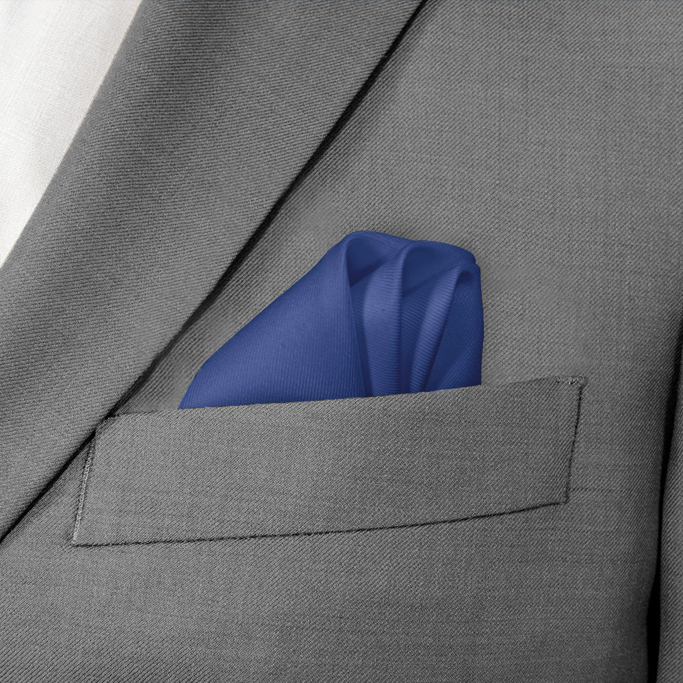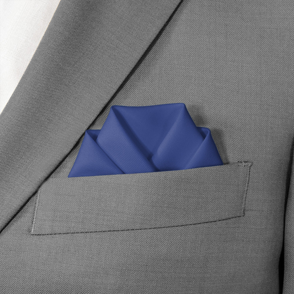 Classic solid blue pocket squares convey confidence, goodness, and loyalty in this shade closely matched to Azazie Royal Blue.