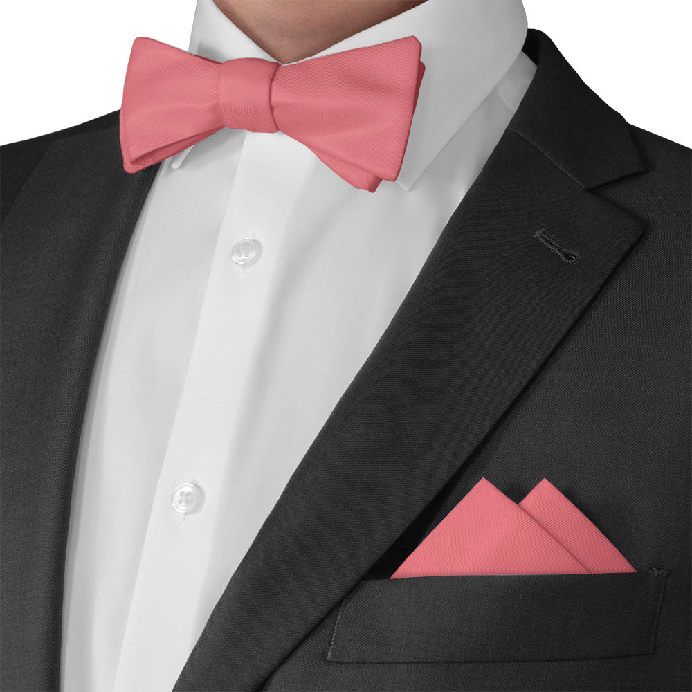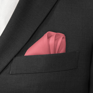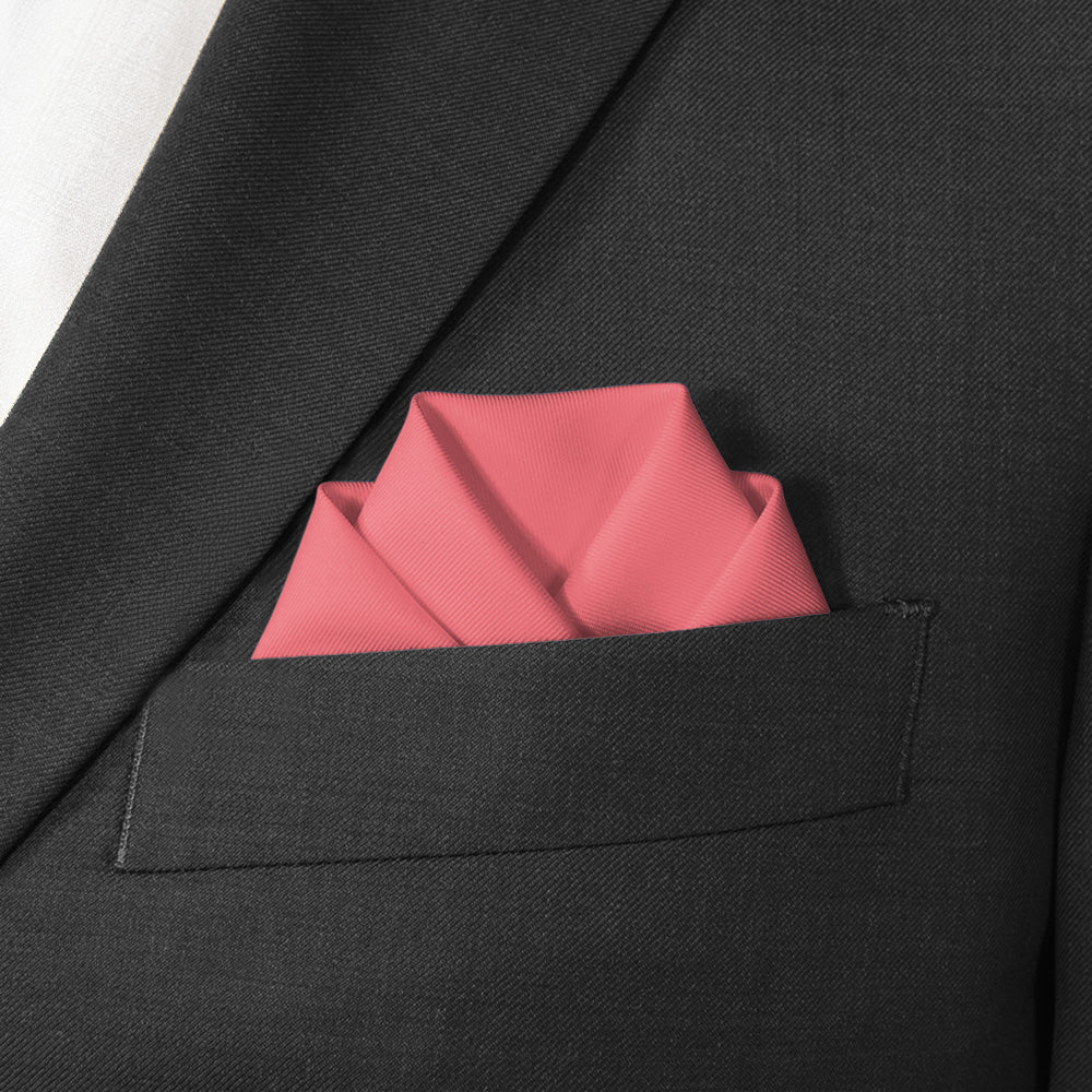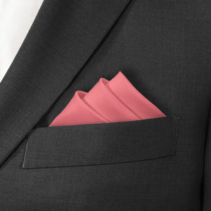 A solid pink wedding pocket square conveys joy and romance, like this summery shade matched to Azazie Watermelon.