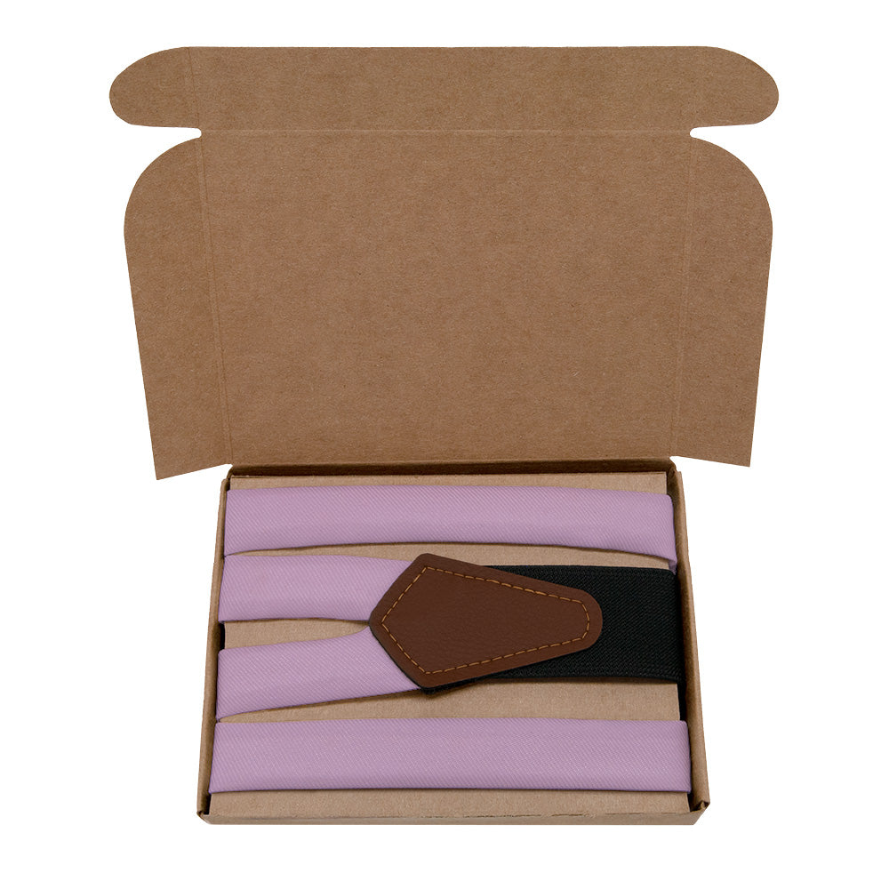 Solid wisteria suspenders are perfect for a wedding, since wisterias symbolize romance and devotion. These purple suspenders matched to Azazie Wisteria makes it easy to coordinate your wedding party.