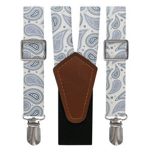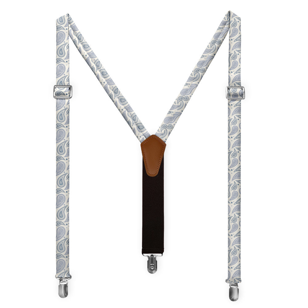 Printed fabric straps are 1-inch wide and secured to an elastic rear strap with vegan leather Y-back to allow the suspenders to move with you and extend as you bend. We use silver alligator pant clips that feature a special mechanism to ensure the suspenders clamp securely to pants.
