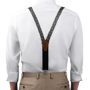 Printed fabric straps are 1-inch wide and secured to an elastic rear strap with vegan leather Y-back to allow the suspenders to move with you and extend as you bend. We use silver alligator pant clips that feature a special mechanism to ensure the suspenders clamp securely to pants.