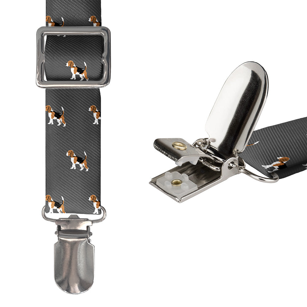 The Beagle suspenders capture the merry disposition of these lovable dogs. A repeating pattern of tail-wagging beagles makes these dog suspenders the perfect gift for any beagle owner.