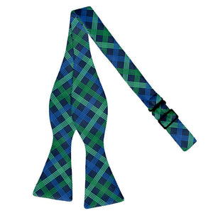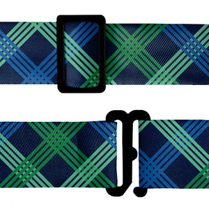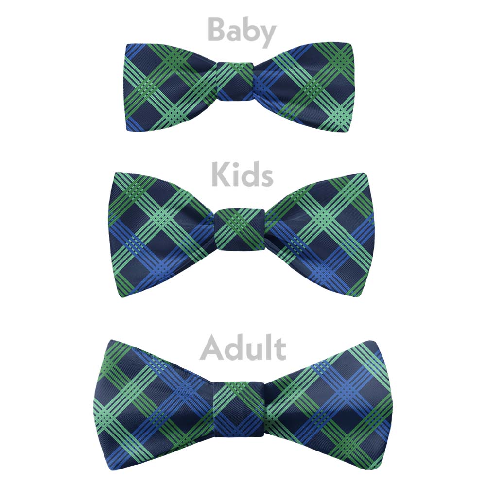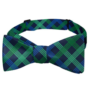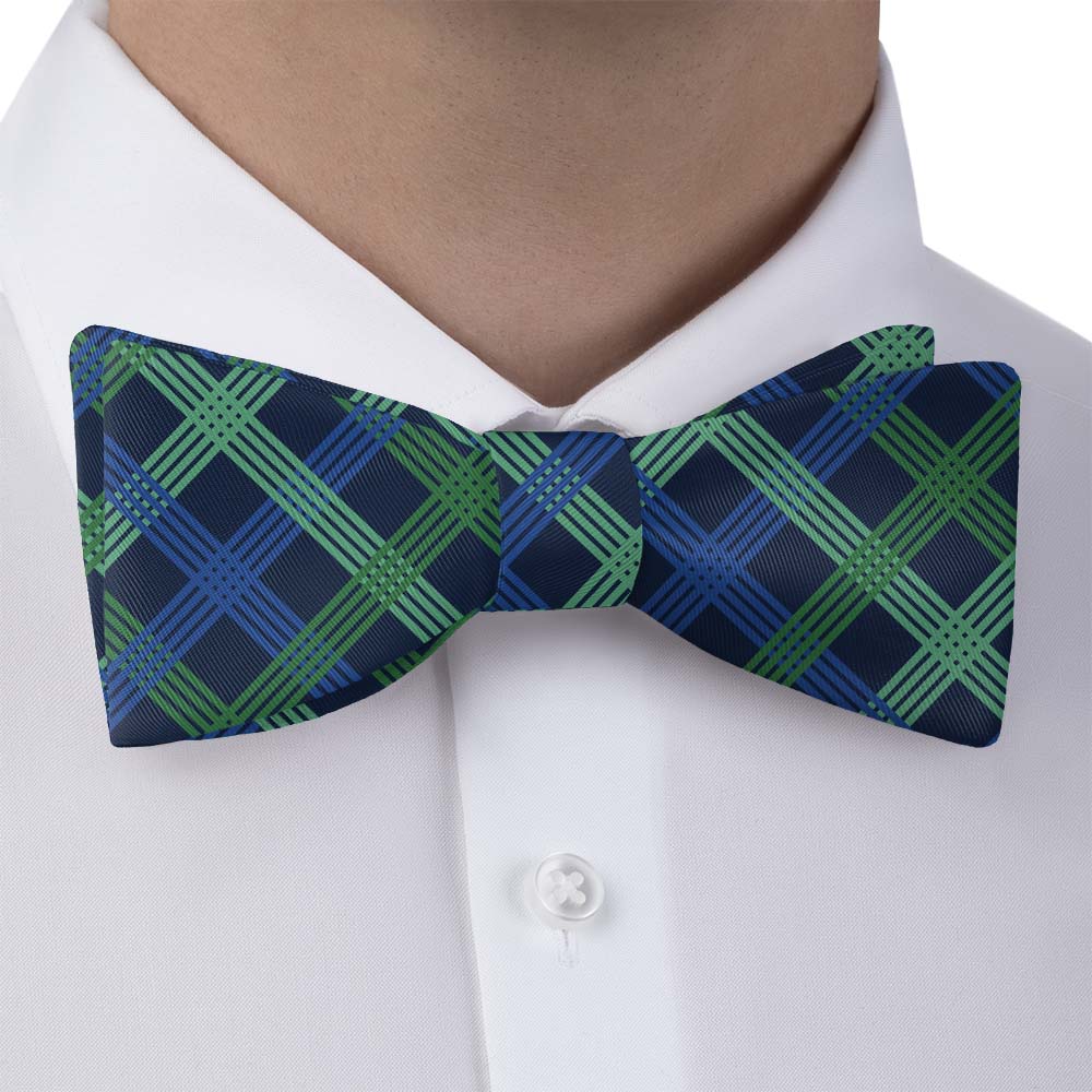 Interwoven stripes in three colors create a distinctive and energetic plaid bow tie with modern appeal. Design your own tie in the Belmont Plaid pattern by selecting the stripes and background in your own color combination.