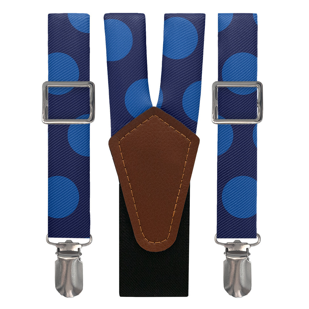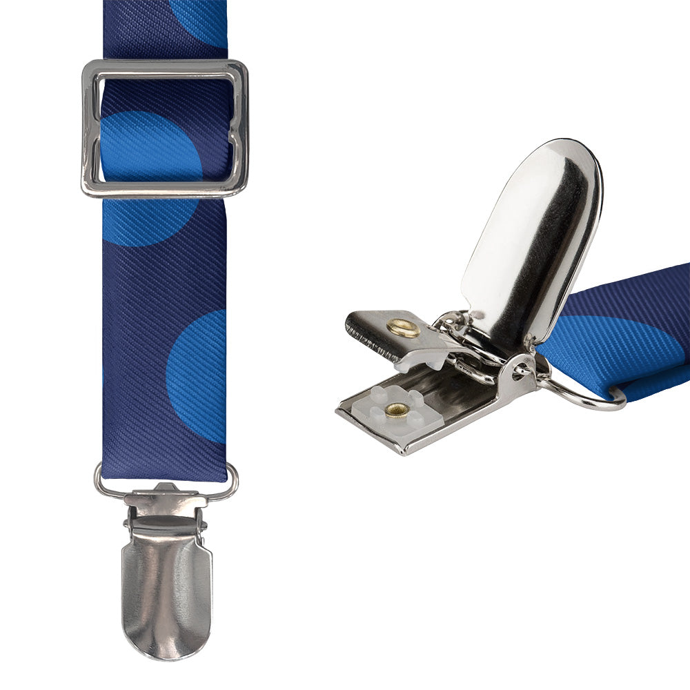 Printed fabric straps are 1-inch wide and secured to an elastic rear strap with vegan leather Y-back to allow the suspenders to move with you and extend as you bend. We use silver alligator pant clips that feature a special mechanism to ensure the suspenders clamp securely to pants.