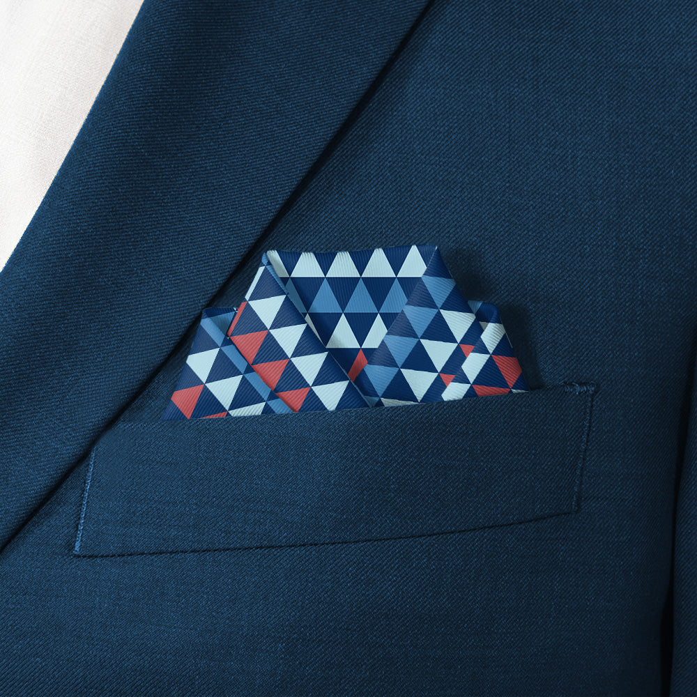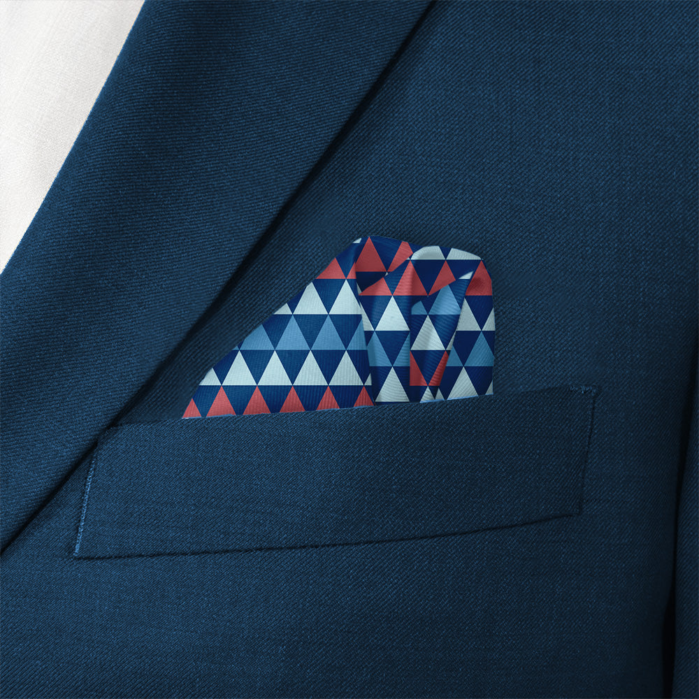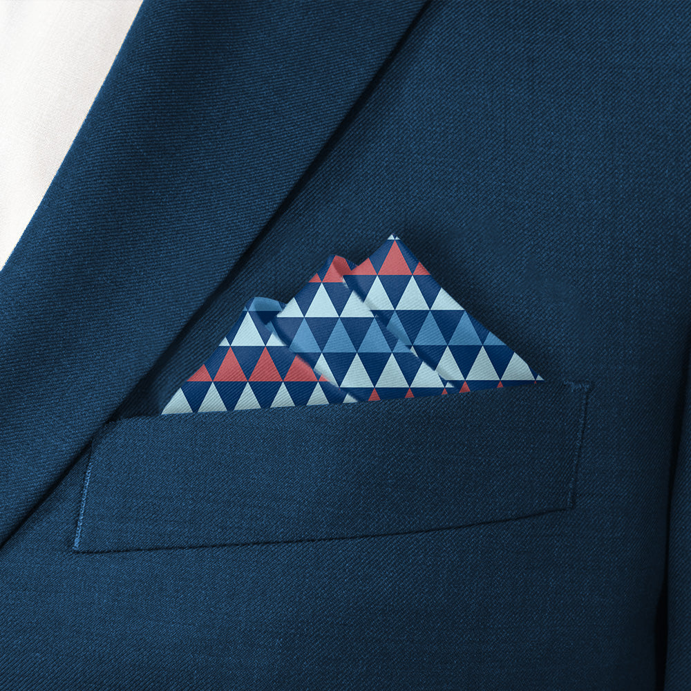 We print all our pocket squares on a recycled twill fabric made from plastic bottles that we have milled specifically for our products. We print our pocket squares on a single side and finish the edges with a fine purl edge. The back side of the pocket square will be unprinted.