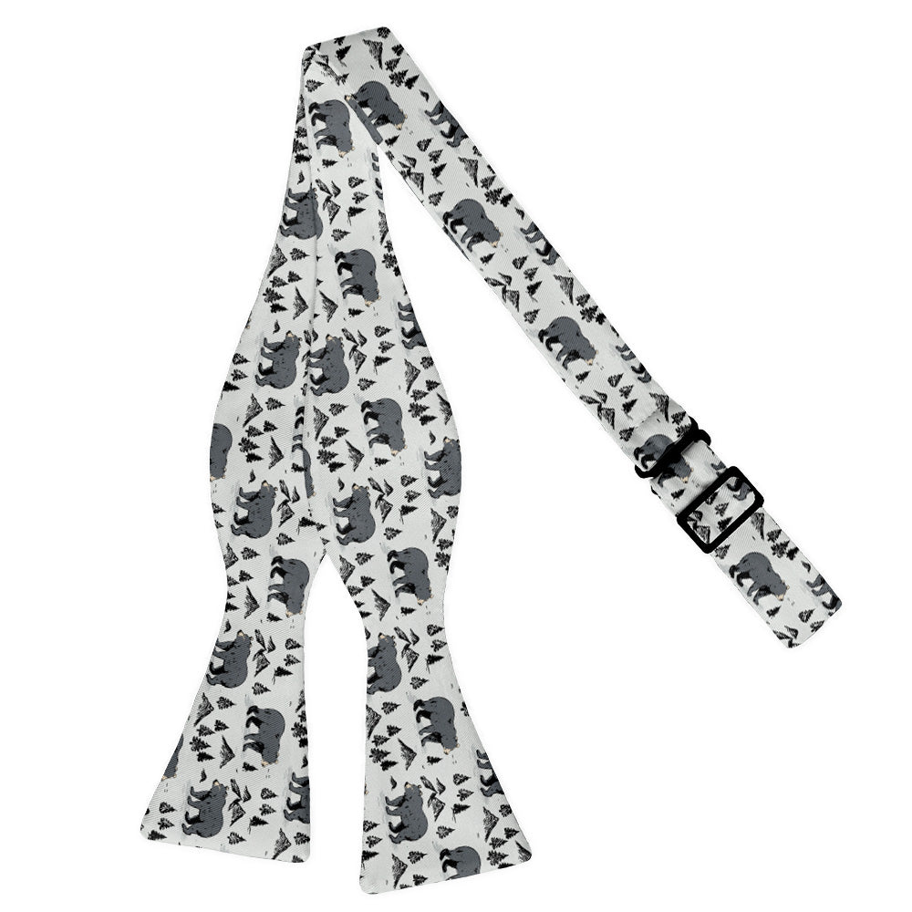 This Boulder Bear bow tie displays a distinctive pattern of bears moving among pine trees and mountain shapes, forming a rugged, outdoorsy look. Its detailed artwork conveys both the power and peacefulness of alpine wildlife. Made thoughtfully in Colorado, it's a memorable piece for anyone drawn to the outdoors.