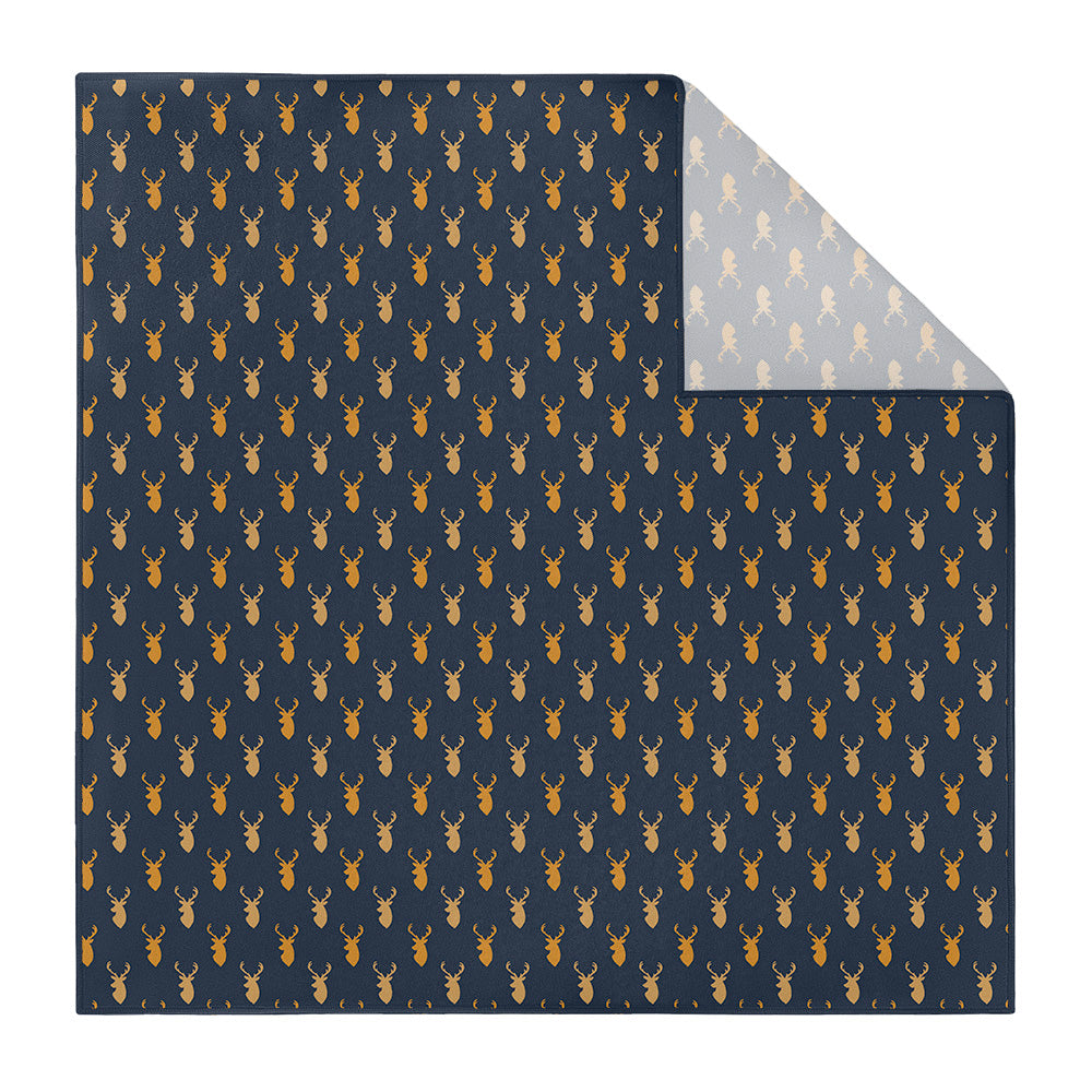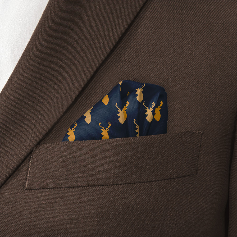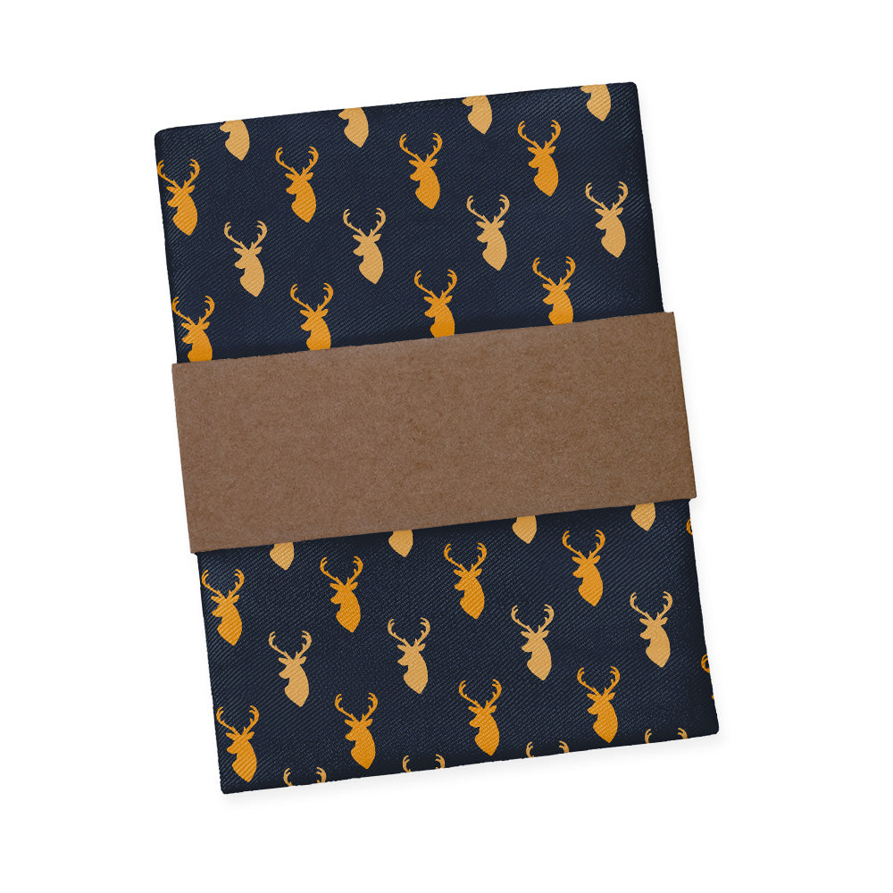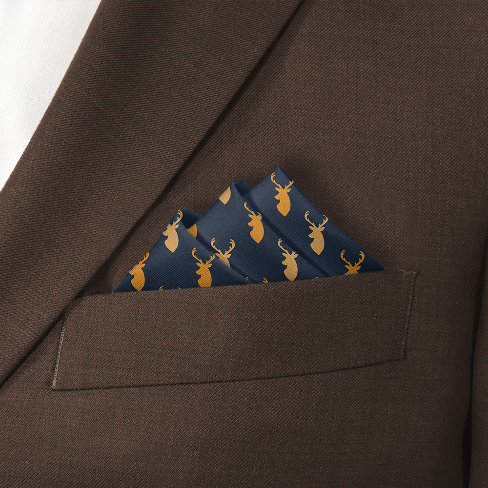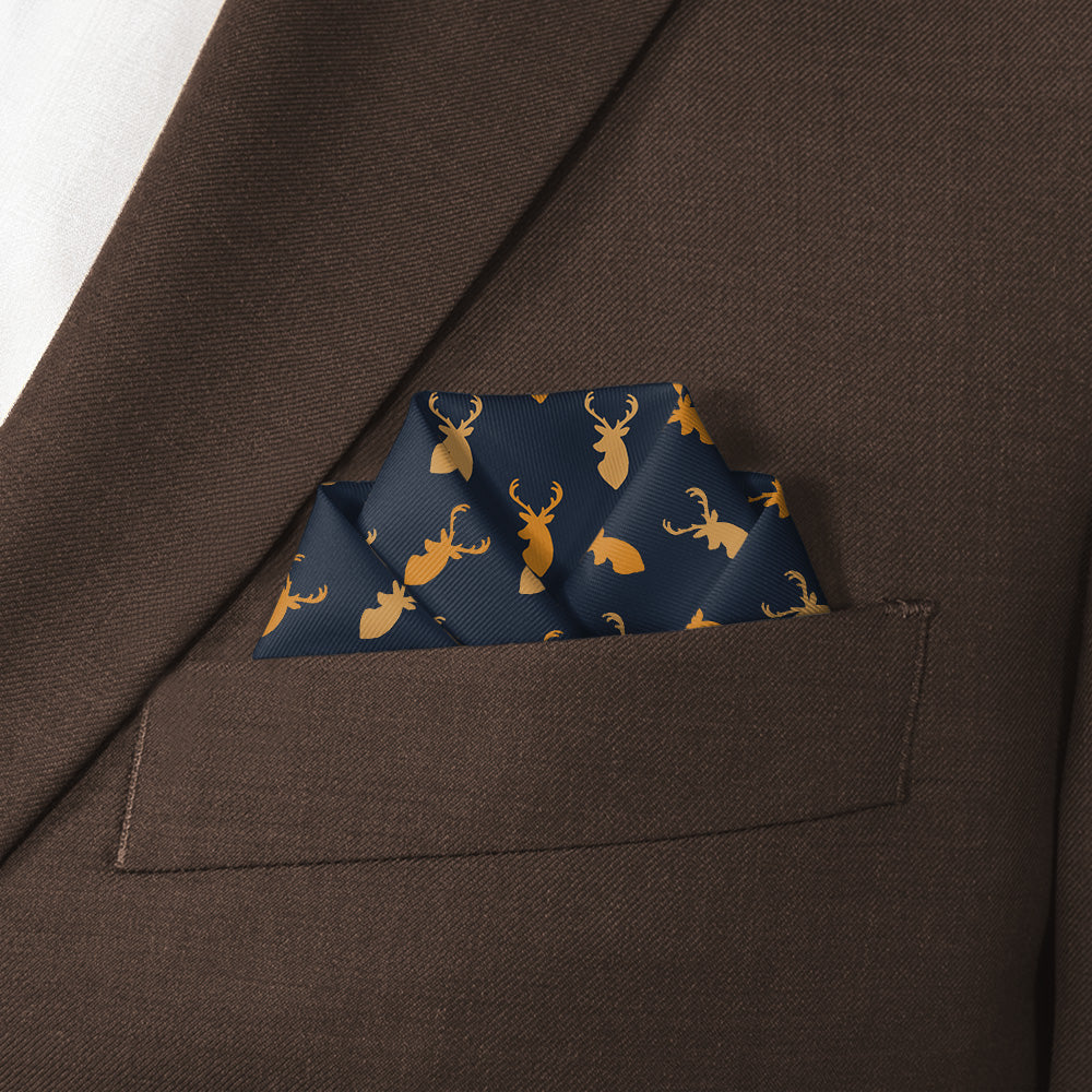 This repeating buck motif is perfect for hunters. Featuring a classic buck's head silhouette with proud, arching antlers, this pocket square is appropriate for formal occasions or upscale office wear alike. The minimalist deer pattern works well for weddings, especially for rustic or country ceremonies. For groomsmen, they can be customized to match your wedding colors.