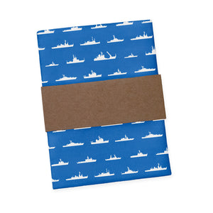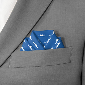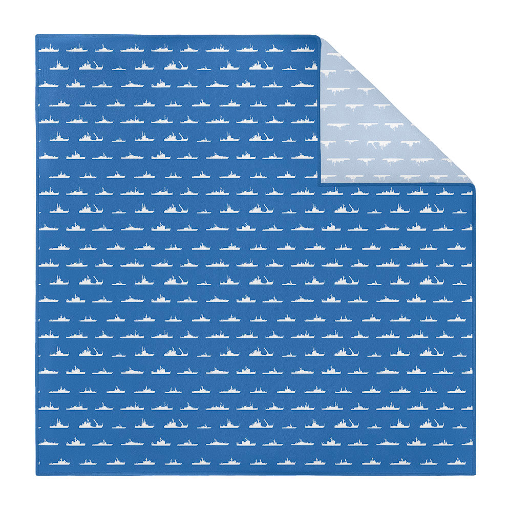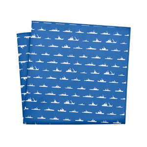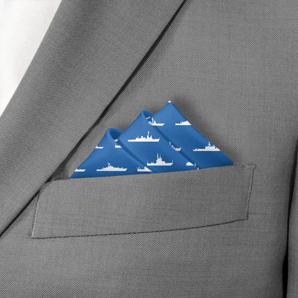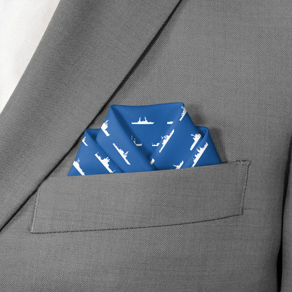 Cutters, Buoy Tenders, Icebreaking Tugs, and other ships sail across the blue surface of this Coast Guard pocket square. Coasties and ship enthusiasts alike will love the Coast Guard Fleet pocket square.