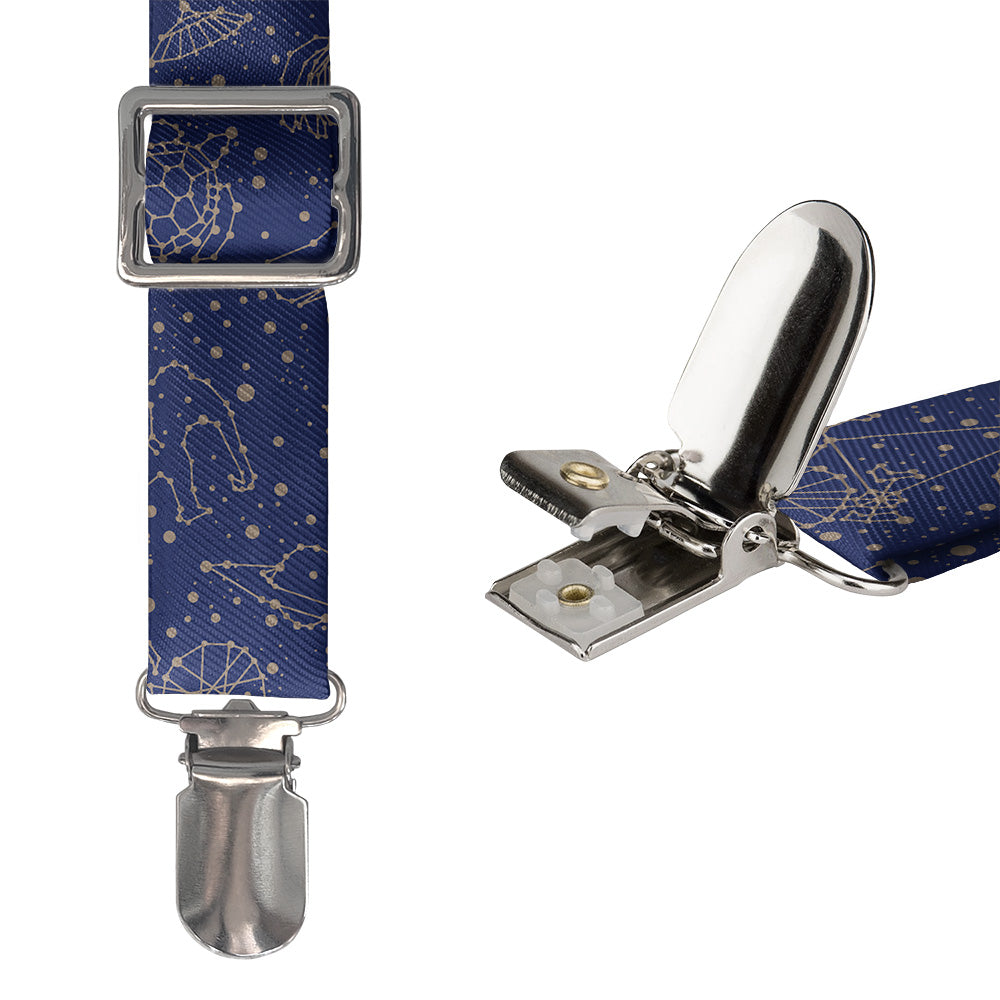 Backyard astronomers and outer space enthusiasts will love the double-takes these star suspenders gets. Our customizable colors let you design your own to make them even more unique. The Constellation suspenders make a great contrast to a pale shirt.