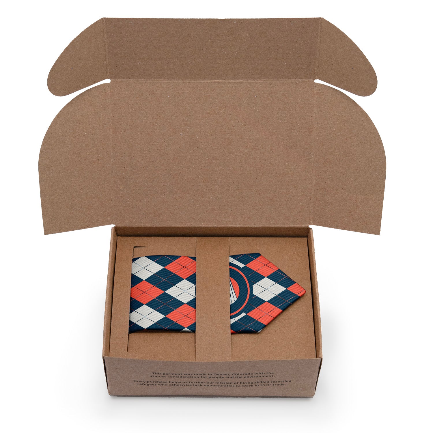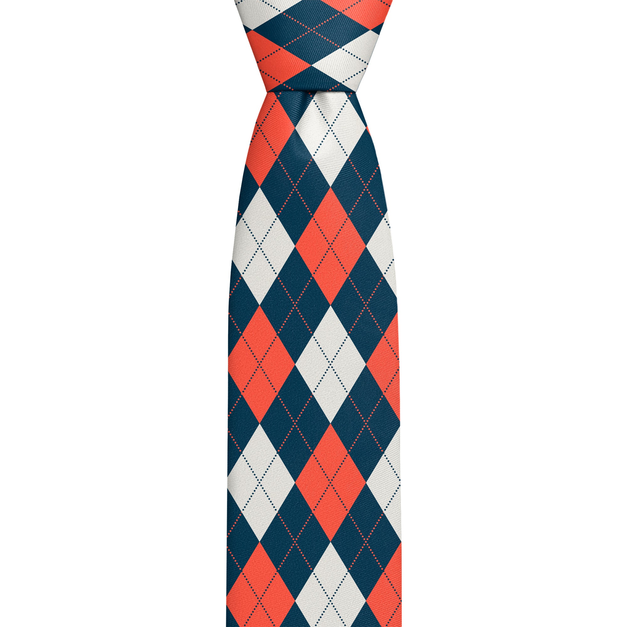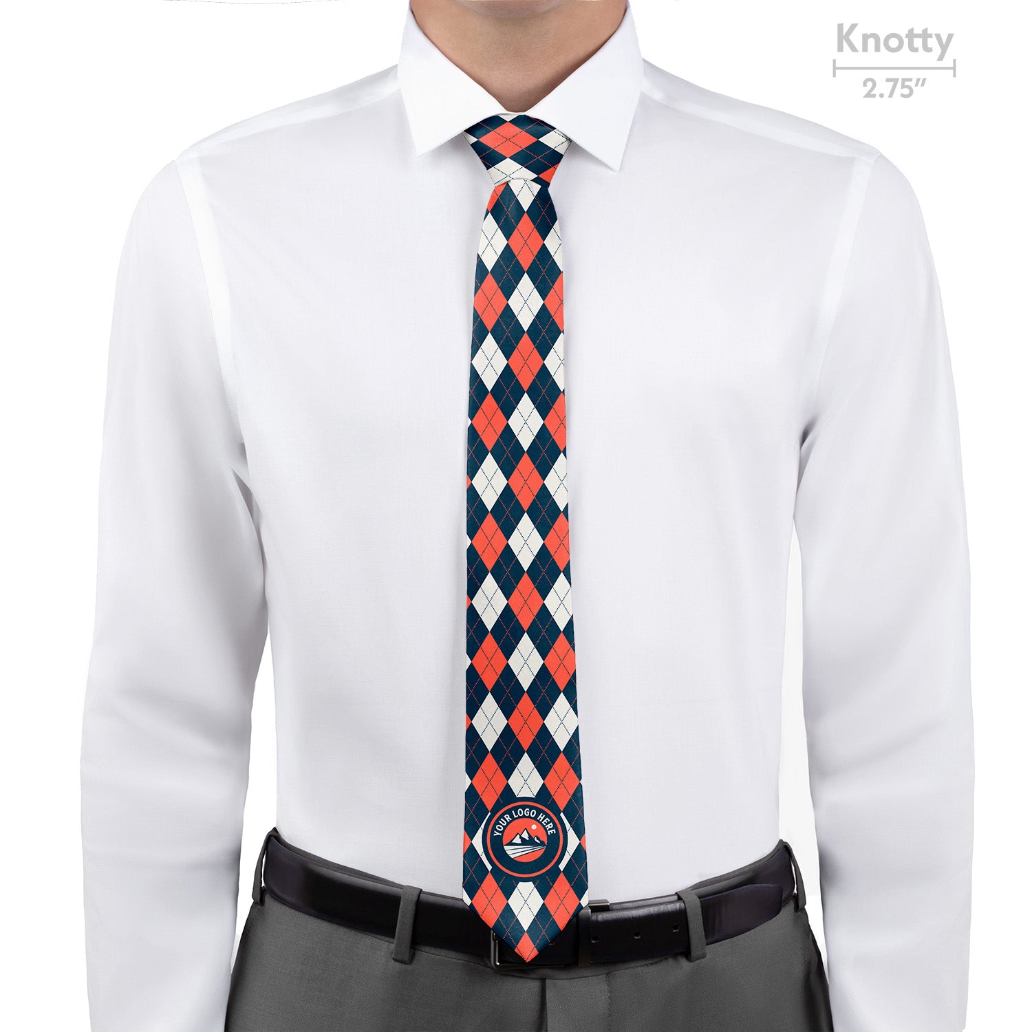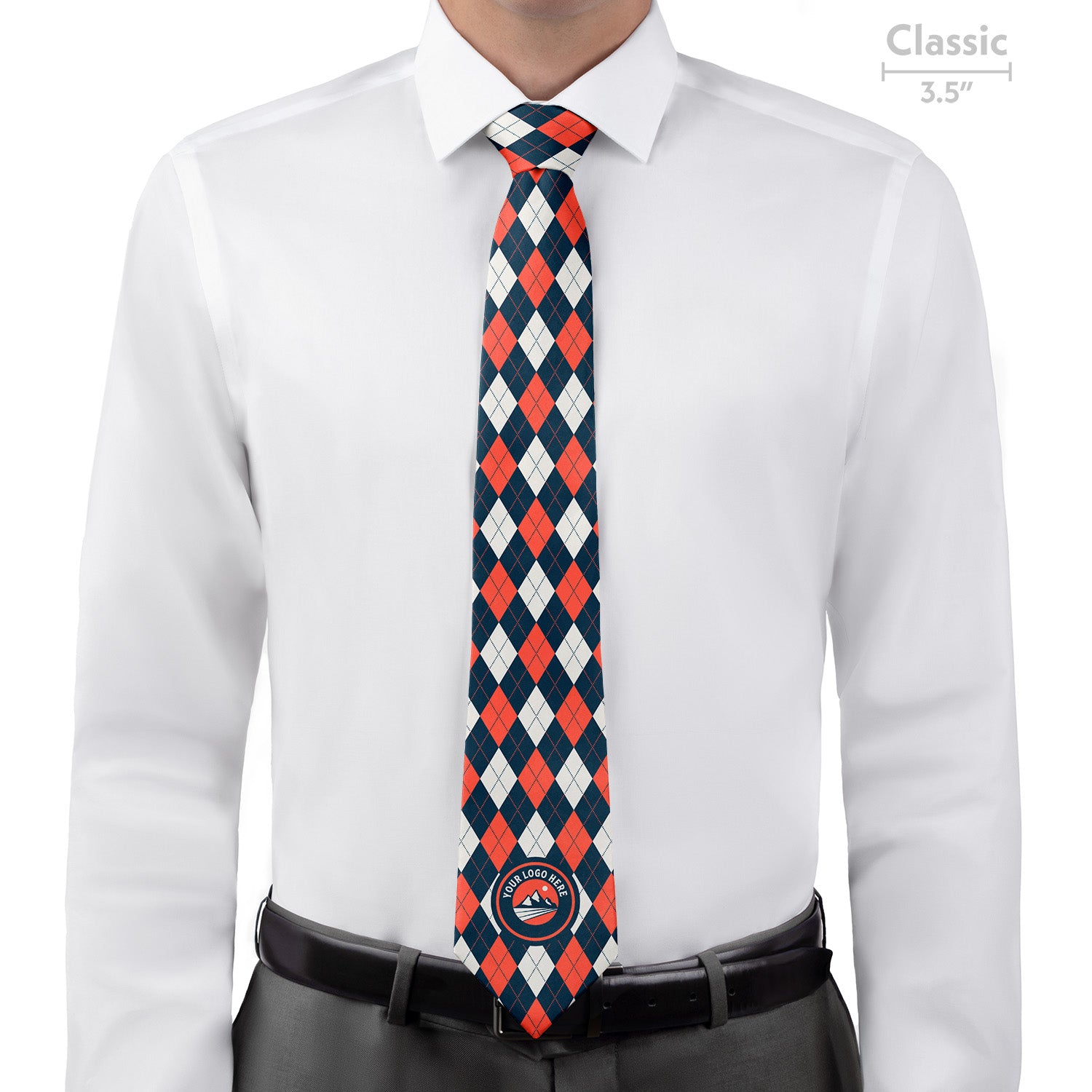 The Argyle 1 Custom Logo Necktie showcases your logo with class and confidence. This tie features a centered single-placed logo, on a formal three-color argyle pattern. Argyle is a plaid-like pattern created by overlapping diagonal lines on solid diamonds. This pattern is believed to have originated in the 17th century and symbolized prestige and sophistication. The Argyle 1 logo necktie is perfect for uniforms, events or gifting for companies and institutions including governmental organizations, fine dining, hotels, prep schools, and universities. Our neckties are carefully crafted from a high quality recycled twill fabric we mill specifically for our neckties. This ideal tie fabric perfectly balances softness, durability and exceptional print quality with no design interruptions.
