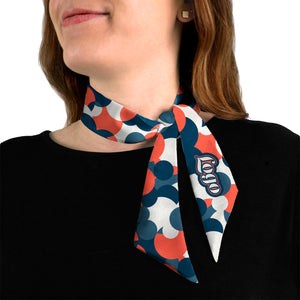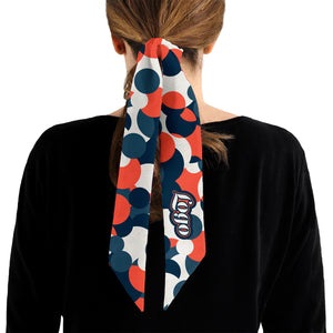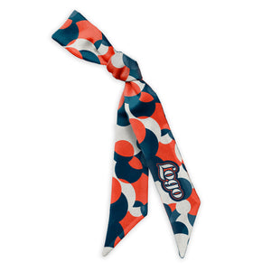 Scarves may seem like a serious accessory, but they do not have to be! Bubble Dots 4 Custom Logo Hair Scarf is a modern, funky, stand-out pattern that showcases a fun side of your brand’s style. Your logo will be placed near one end of the scarf, floating on top of overlapping bubbles that can be customized in your brand colors for a colorful, unique, and cohesive look. Great for outdoor events, company parties, or any joyous occasion, these buoyant and playful skinny scarves are made with high-quality recycled stretch poplin fabric that is equal parts soft, structured and supple. Printed using vibrant and crisp dye sublimation techniques for consistent and unparalleled results, our scarves will both look great and stand the test of time - no matter if you prefer to wear it in your hair, around your neck or tied to a purse or bag.