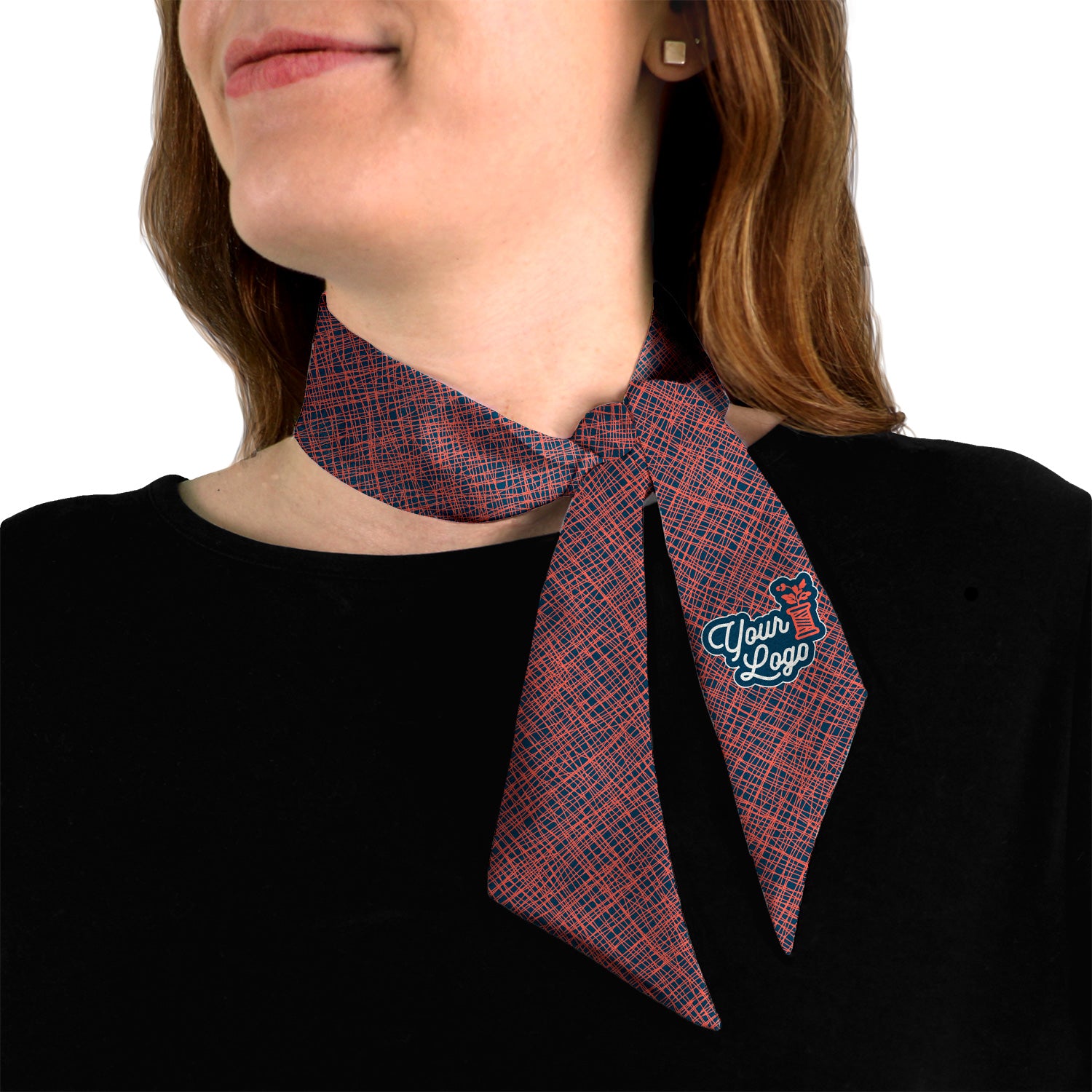 Seamlessly weave your brand identity into your scarf with the Burlap 1 Custom Logo Hair Scarf. Modeled after the look of heavy, plain-woven fabric typically made from jute or hemp fibers, this two-color pattern gives the illusion of textured burlap. This hair scarf features your logo single-placed near the end of the scarf, parallel to the scarf’s long edges. Offering an eye-catching illusion of texture, this scarf is best for those who want added depth and interest compared to a plain solid scarf, while still being simple and versatile. This hair scarf can seamlessly transition from corporate meetings to casual events. Versatile and stylish, our hair scarves can be worn in a variety of manners - in your hair, around your neck or on your bag - making them a standout choice for a variety of industries. The premium recycled stretch poplin fabric we use is silk-like and crisply printed on both sides thanks to advanced sublimation techniques for consistent and unparalleled results.