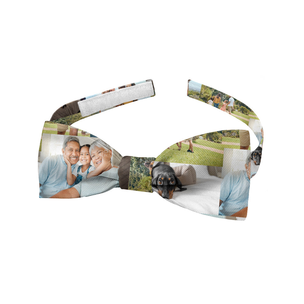 When you want your photos to take center stage, our Collage Custom Photo Bow Tie is the perfect choice! This design eliminates any background distractions by tiling your photos edge-to-edge across the entire bow tie. You can include up to four photos in the repeated pattern, making it ideal for individual portraits, group shots, landscapes, or any images you love. With vibrant, high-quality sublimation printing, premium fabric, and expert craftsmanship, this bow tie becomes a timeless wearable keepsake that won’t fade or peel.