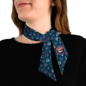 Our logo hair scarves are available in one size that fits a wide of range of people. While our hair scarves are most popular with women, they are versatile and unisex making them perfect anyone who wants to rock a skinny scarf.