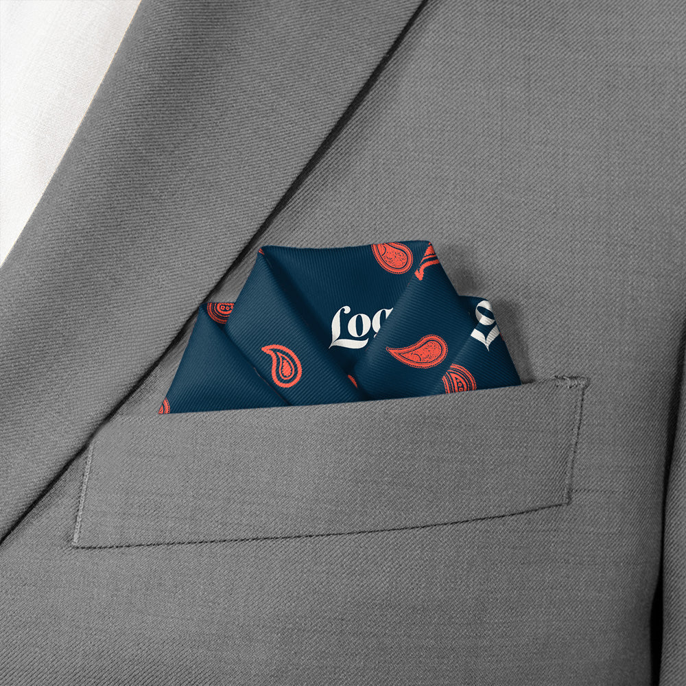 With a whimsical and cheery paisley motif, the Paisley 2 Custom Logo Pocket Square is a playful and lighthearted way to incorporate your logo into a fashionable design. Paisley is thought to have originated 2,000 years ago in the Middle East, and has been adopted into bohemian and art nouveau aesthetics since. Despite its rich and lengthy history, paisley patterns remain both fashion-forward and eye-catching even today. Your logo or graphic will be incorporated into this paisley pattern and showcased over the entire pocket square. Many types of companies and organizations love incorporating their logo into this lively and timelines pattern, and our high-quality advanced dye-sublimation printing will ensure that any colors you select for both your logo and for the pattern will have exceptional print clarity and full color saturation.