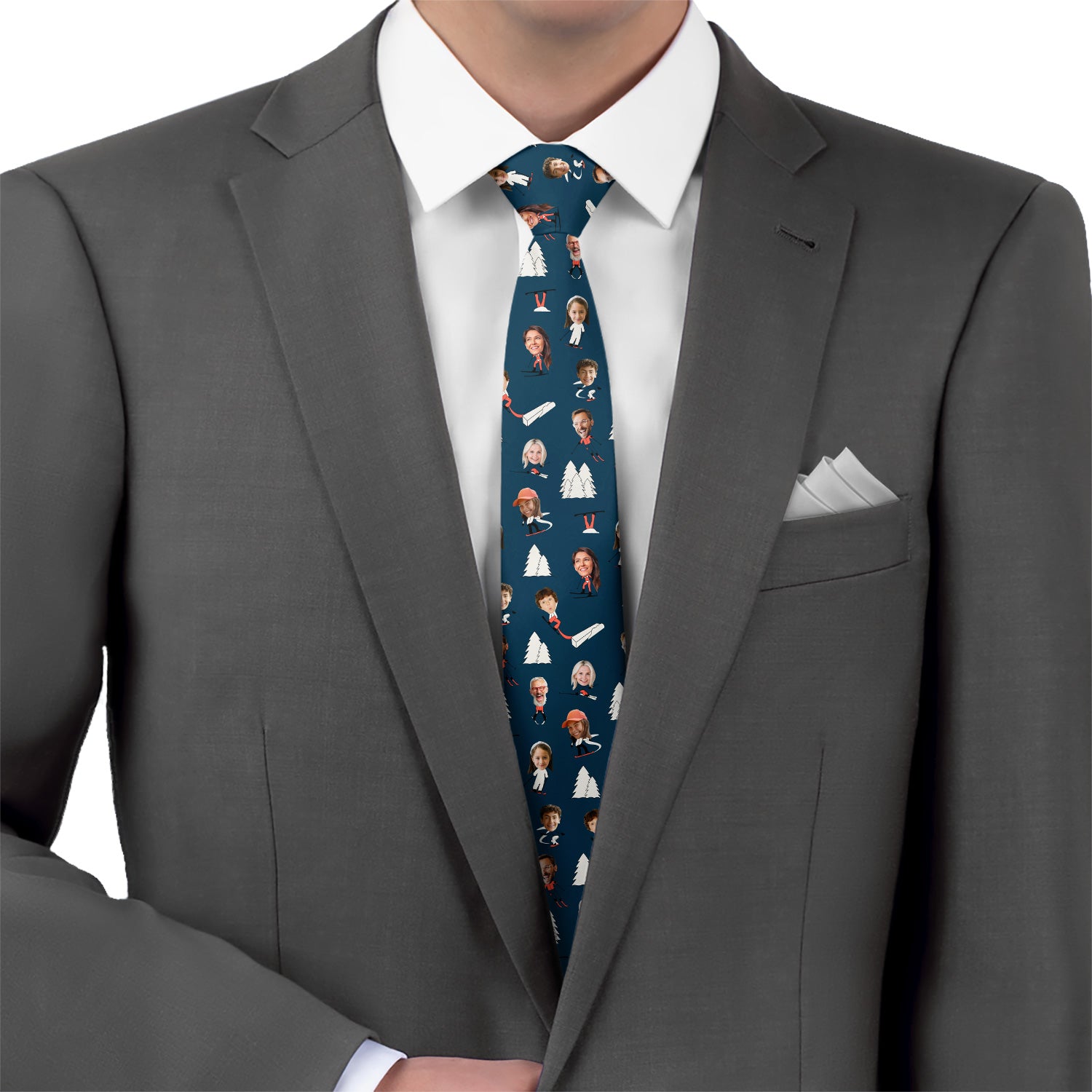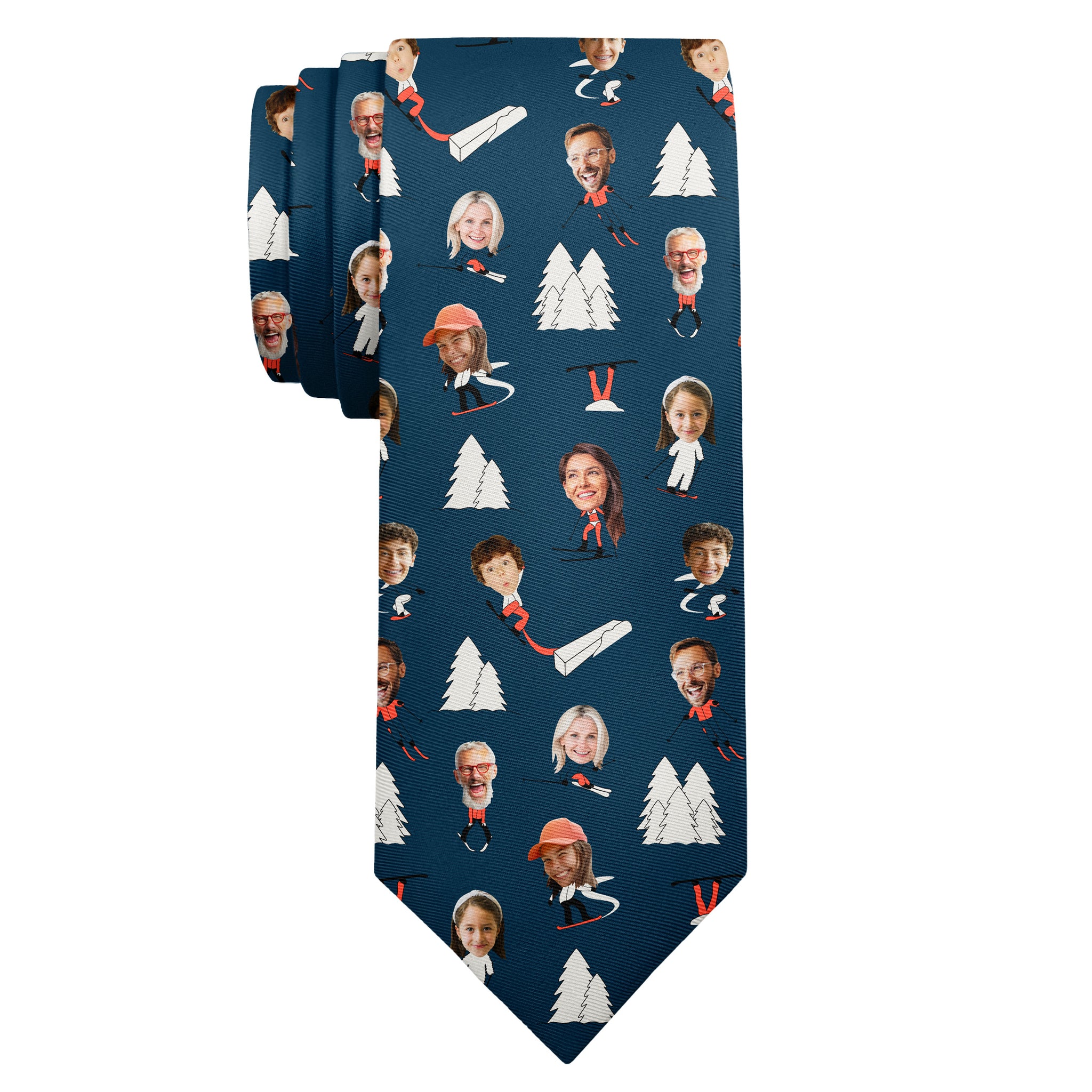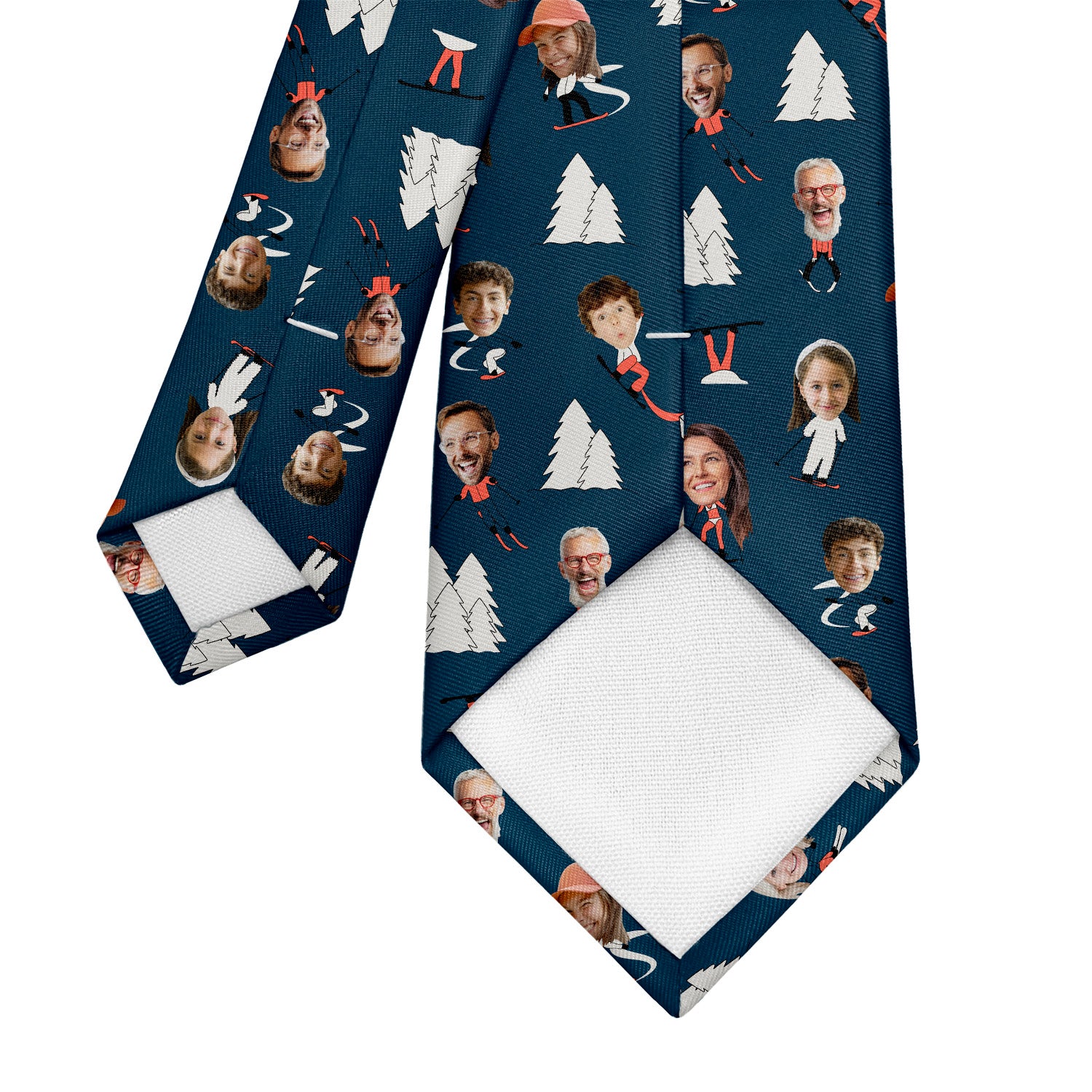 Get ready for the perfect power day with our Slopes necktie! Perfect for all the ski and snow lovers out there, this fun and fancy necktie can be made with one photo, or an entire ski-party of up to eight happy faces. The background is complete with the best of a ski resort - trees, a grinding rail, and, of course, skis! If you’d prefer something simpler, we can reduce the number of repeating photos or ski graphics, just let us know what’d you’d like best. However you want your perfect power day to look, our Slopes necktie is perfect for people who love to hit the mountain on a snow day, and our silky-soft fabric and vibrant dye-sublimation printing will bring out the best of your photos on the highest quality necktie.