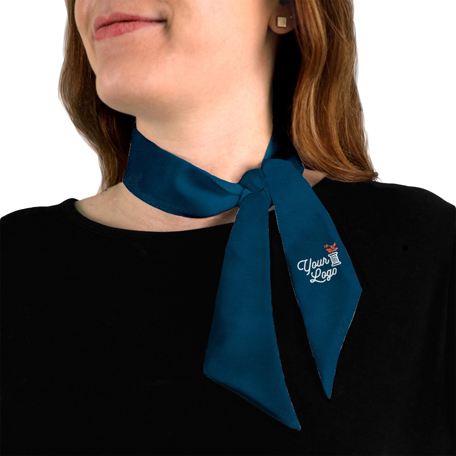 Our most popular pick across all types of industries and organizations, Solid 1 Custom Logo Hair Scarves are here to let your logo or brand be the one and only statement piece. Your logo will be placed near the end of the scarf, parallel to the hair scarf’s long edges so that it can be easily seen when the scarf is tied. Customize the hair scarf’s background color in a branded Pantone color to match your logo artwork, or pick a contrasting color to bring your brand into even sharper focus. Our vibrant sublimation printing will really bring life to your logo, while the high print quality will ensure that colors never fade or peel away.