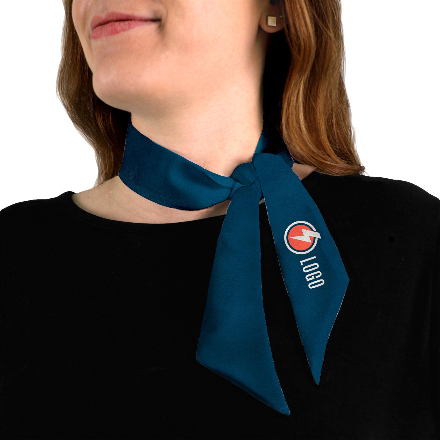 Our Solid 4 Custom Logo Hair Scarf is one of most popular hair scarf choices amongst all types of industries and organizations that appreciate its clean, simple, classic look. Your logo will be placed parallel to the long edges of the scarf, which works well with most logos so long as they do not have many small details. Customize the background in a solid color to ensure your logo really stands out, optioning for bold and bright or something more soft and subtle. Our vibrant dye-sublimation printing produces beautiful and color-correct results, and won’t fade or wear, making your hair scarf a long-lasting accessory. Whether the Solid 4 Hair Scarf is used as a headband, pony-tail holder, or worn tied around the neck or even a bag, this beloved statement piece will show off your logo at its most simple and straightforward.