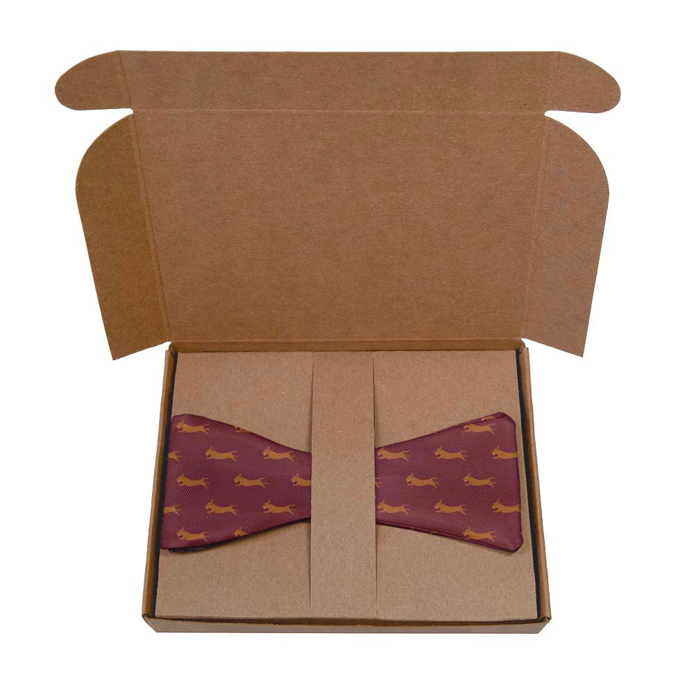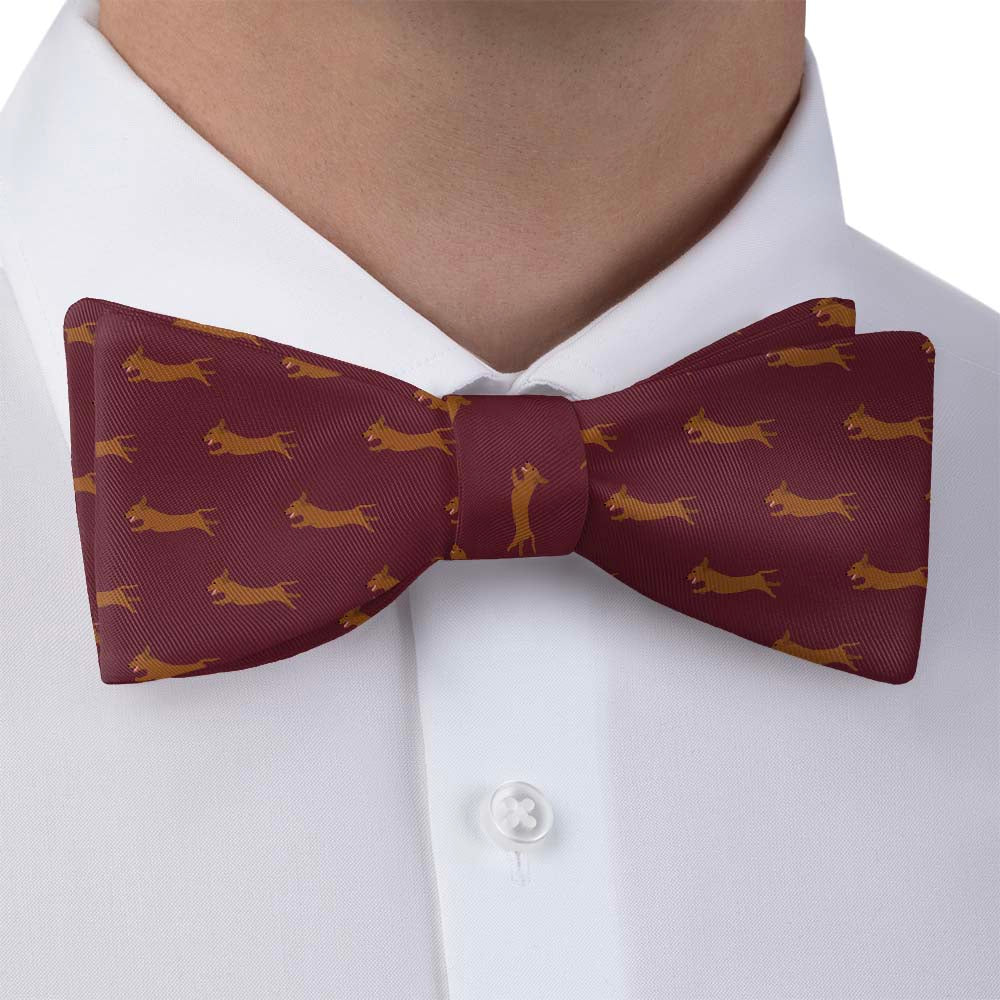 Bred for hunting burrowing animals, Dachshunds are known for their long bodies and short legs. The Dachshund bow tie highlights the beloved wiener dog's iconic profile.