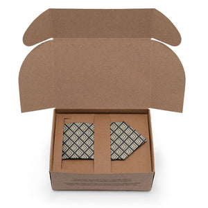 Sustainably sourced thoughtful packaging ready for gifting with 100% recycled and recyclable paper printed with vegetable inks.