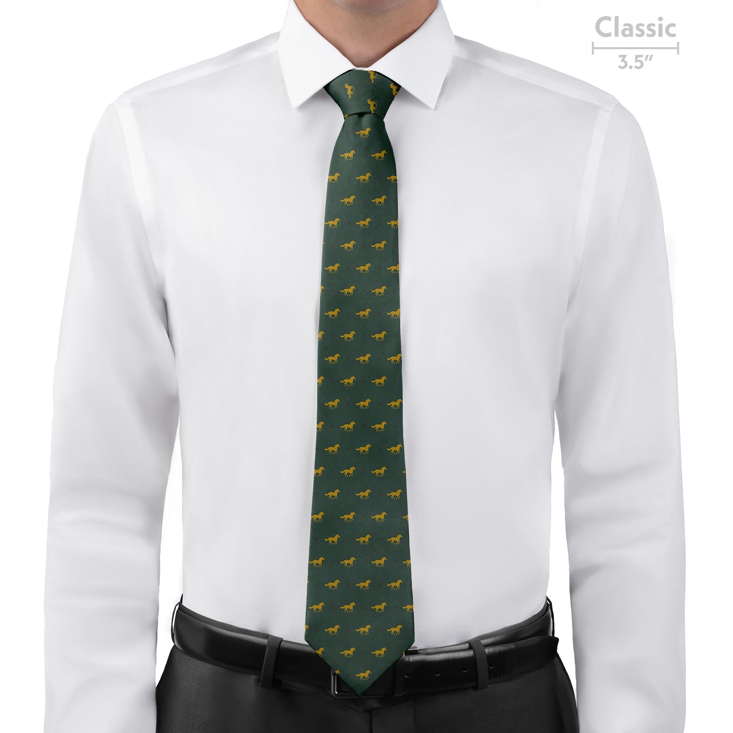 It's off to the racetrack, at least where your tie is concerned! The Derby Horses necktie features a pleasing micro pattern of alternating galloping race horses and tiny dots. Formal enough for special occasions, this pleasing equestrian necktie makes a great gift for horse lovers or racetrack fans alike.