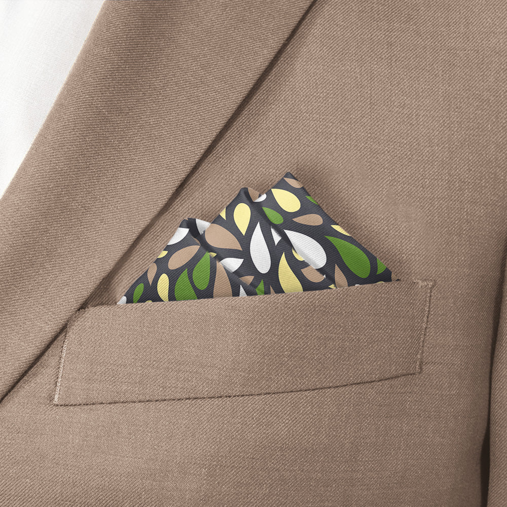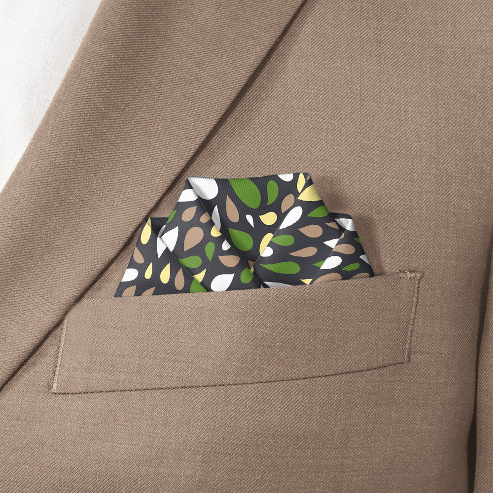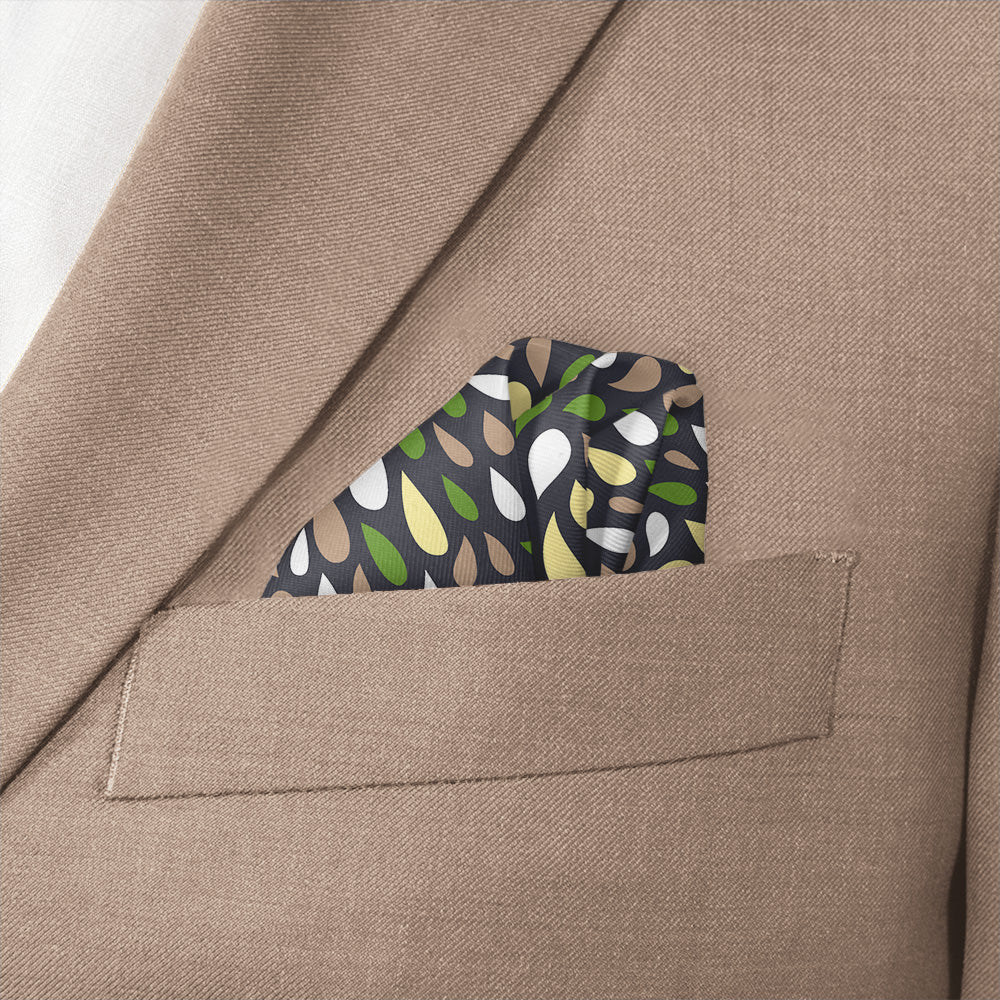 Flowing dew drops of varying sizes give a sense of organic movement to the Dew Paisley pocket square. It's quick and easy to customize these multicolored droplets of this sustainable pocket square in any shades you like. The lively Dew Paisley pattern is a great fit for work or smart-casual looks.