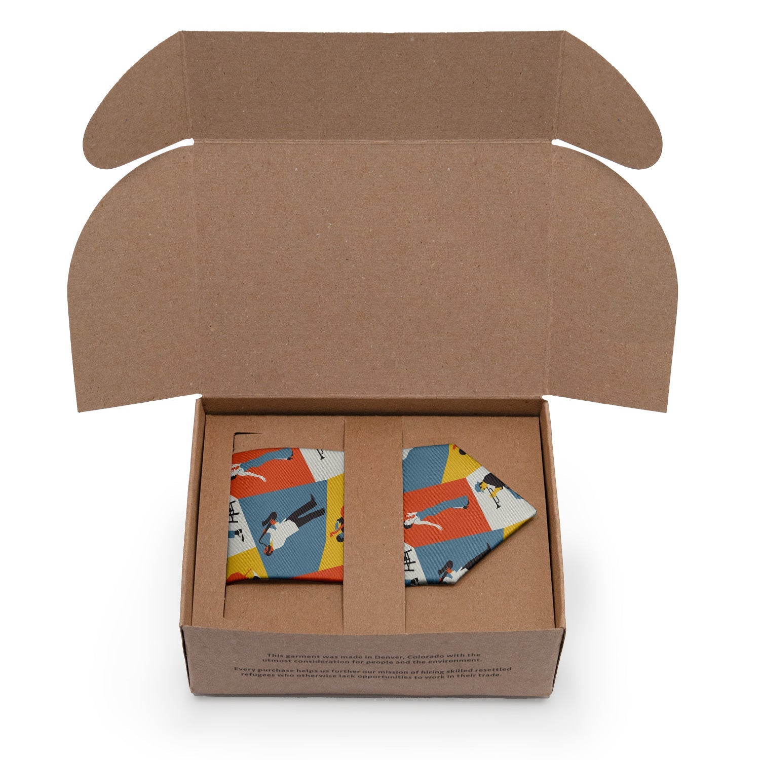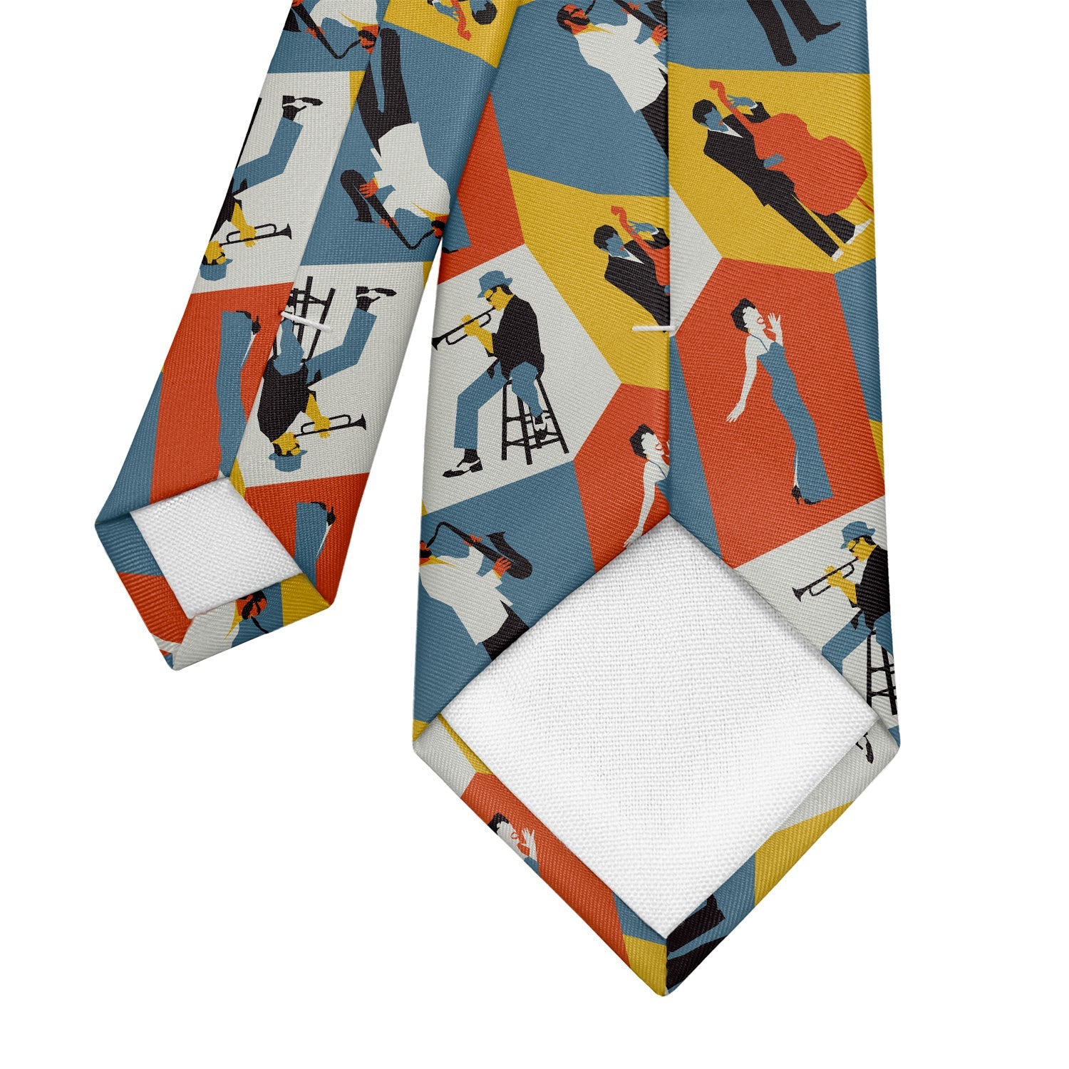 Five Points was once known as the "Harlem of the West" because of its rich culture in Jazz music. Decades ago, famous Jazz musicians such Bille Holiday, Duke Ellington, Miles Davis, Nat King Cole, and many others performed in bars and clubs throughout Five Points. This neighborhood has always been culturally diverse and the jazz music scene is still alive and well. This tie design serves to highlight this history of Jazz music, but also the diversity that is still so much a part of this neighborhood today.