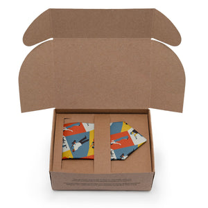 Sustainably sourced thoughtful packaging ready for gifting with 100% recycled and recyclable paper printed with vegetable inks.