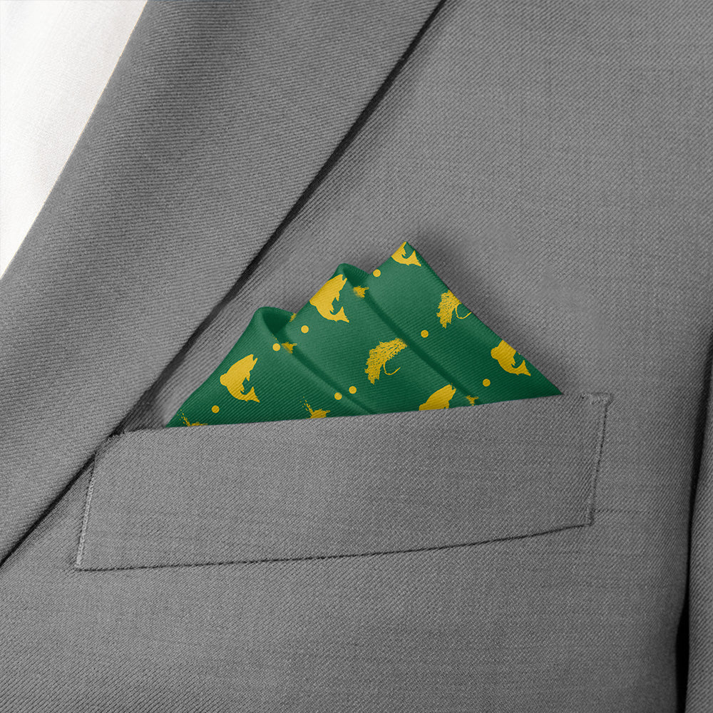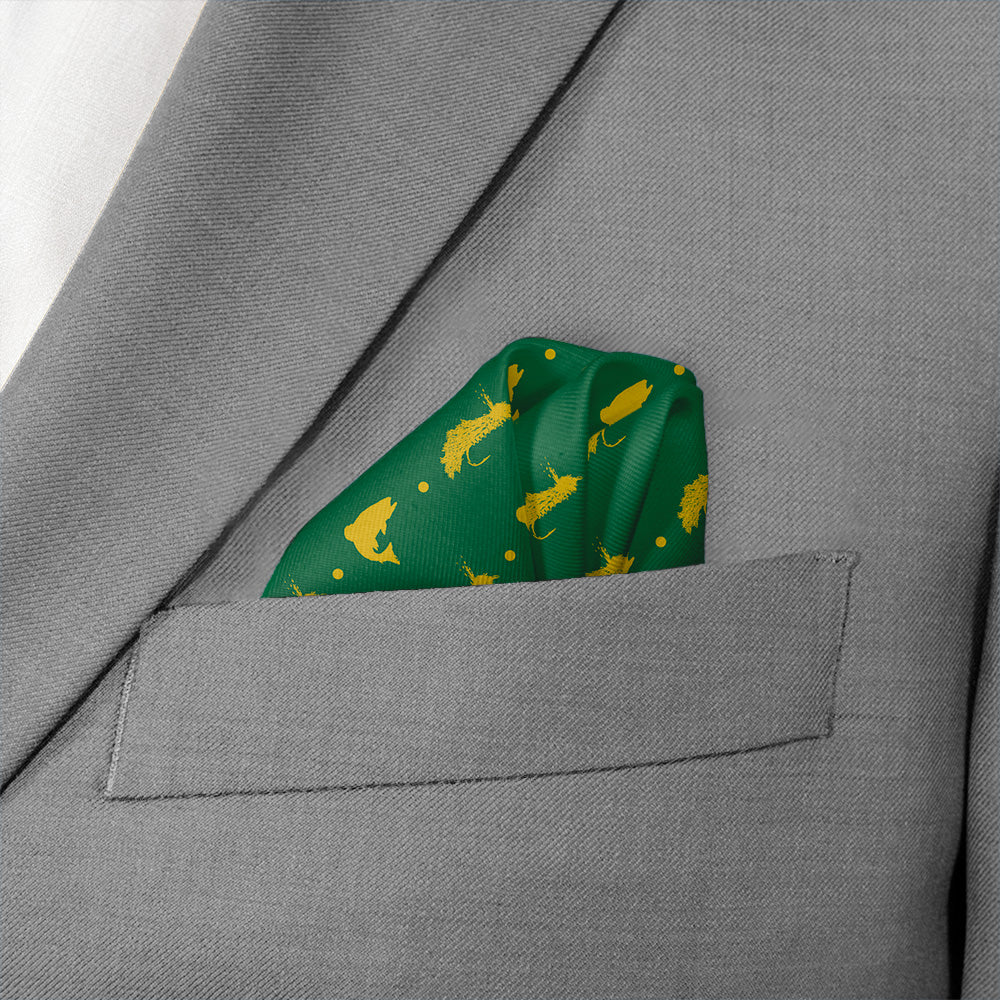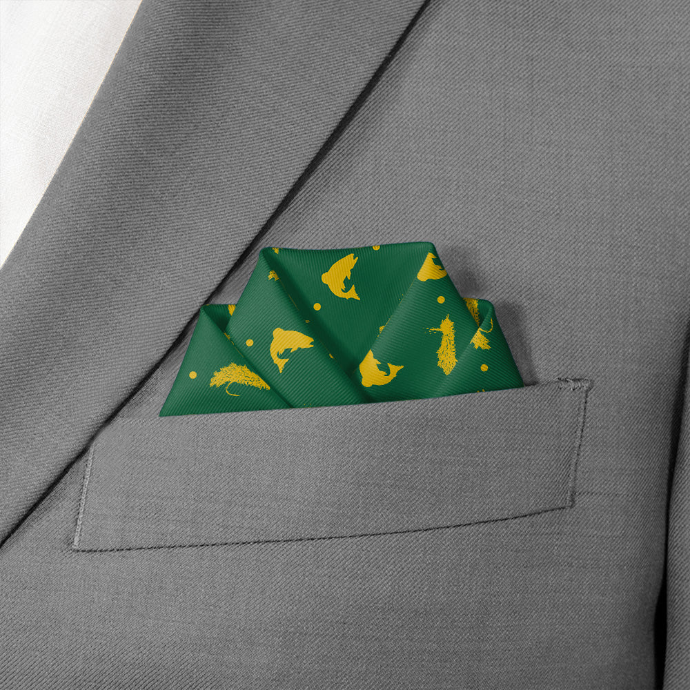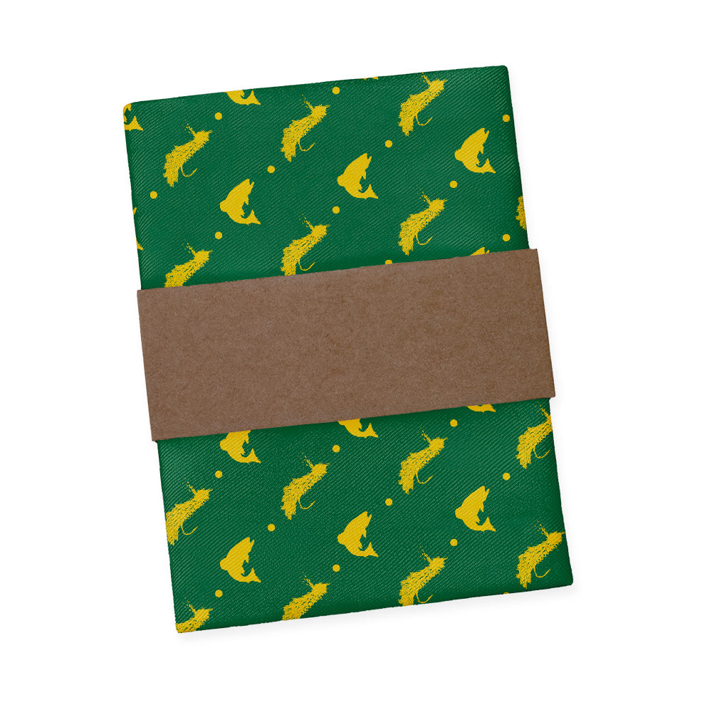 Get hooked on our fly fishing pattern! Perfect for outdoor enthusiasts, these fly fishing pocket square alternate silhouetted fish and fishing lures. Better yet, these can be customized to match any color scheme.