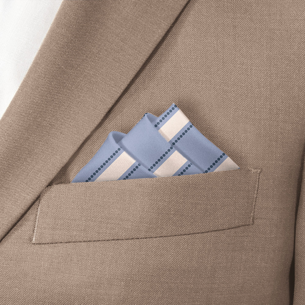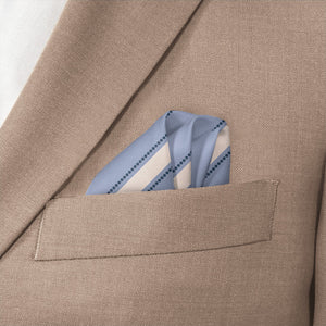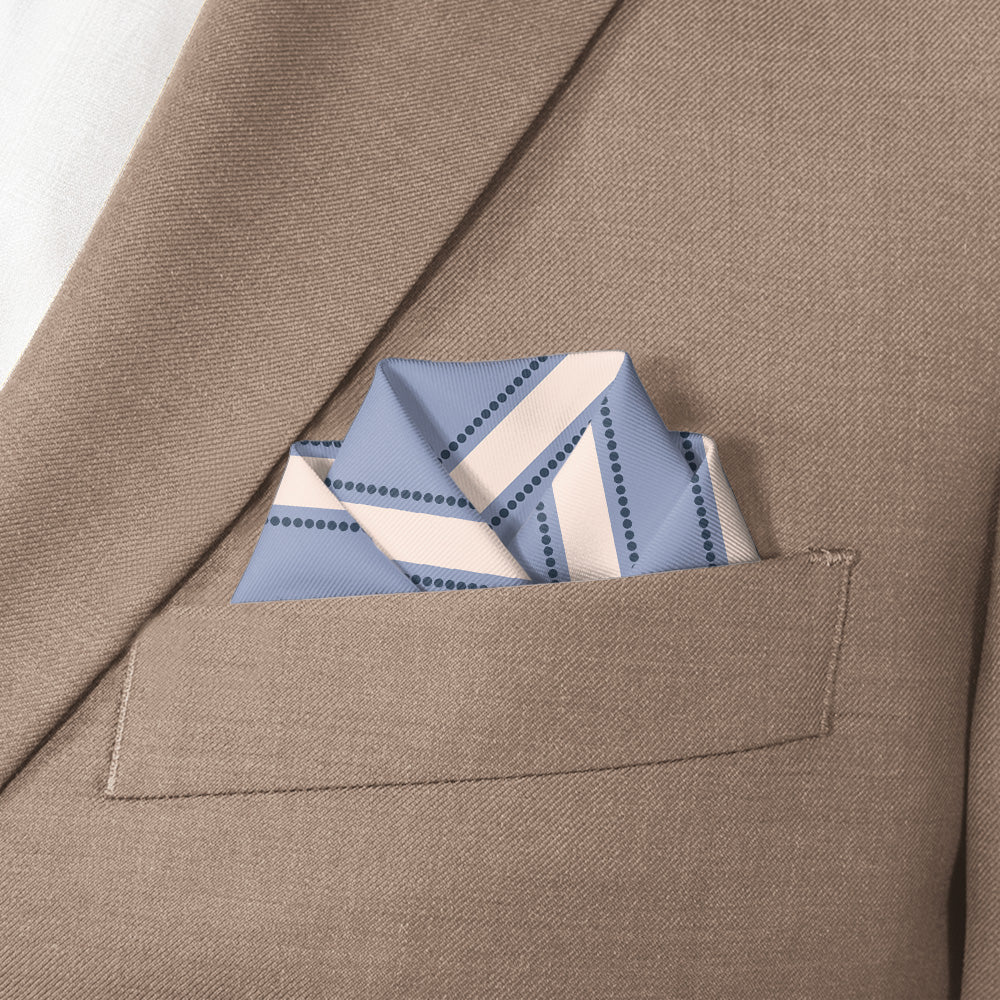We print all our pocket squares on a recycled twill fabric made from plastic bottles that we have milled specifically for our products. We print our pocket squares on a single side and finish the edges with a fine purl edge. The back side of the pocket square will be unprinted.