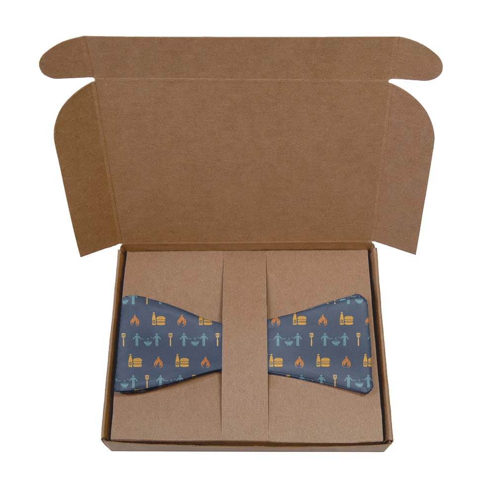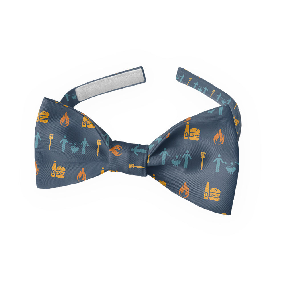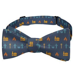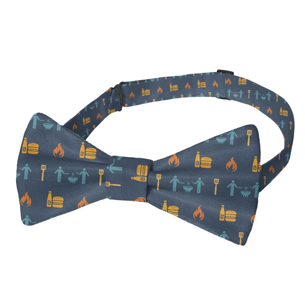 Grill masters will appreciate the fun, stylish pattern on this BBQ bow tie. Burgers, spatulas, friends, and flames make the Grilling with Friends bow tie perfect for summer.