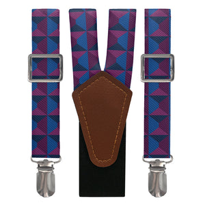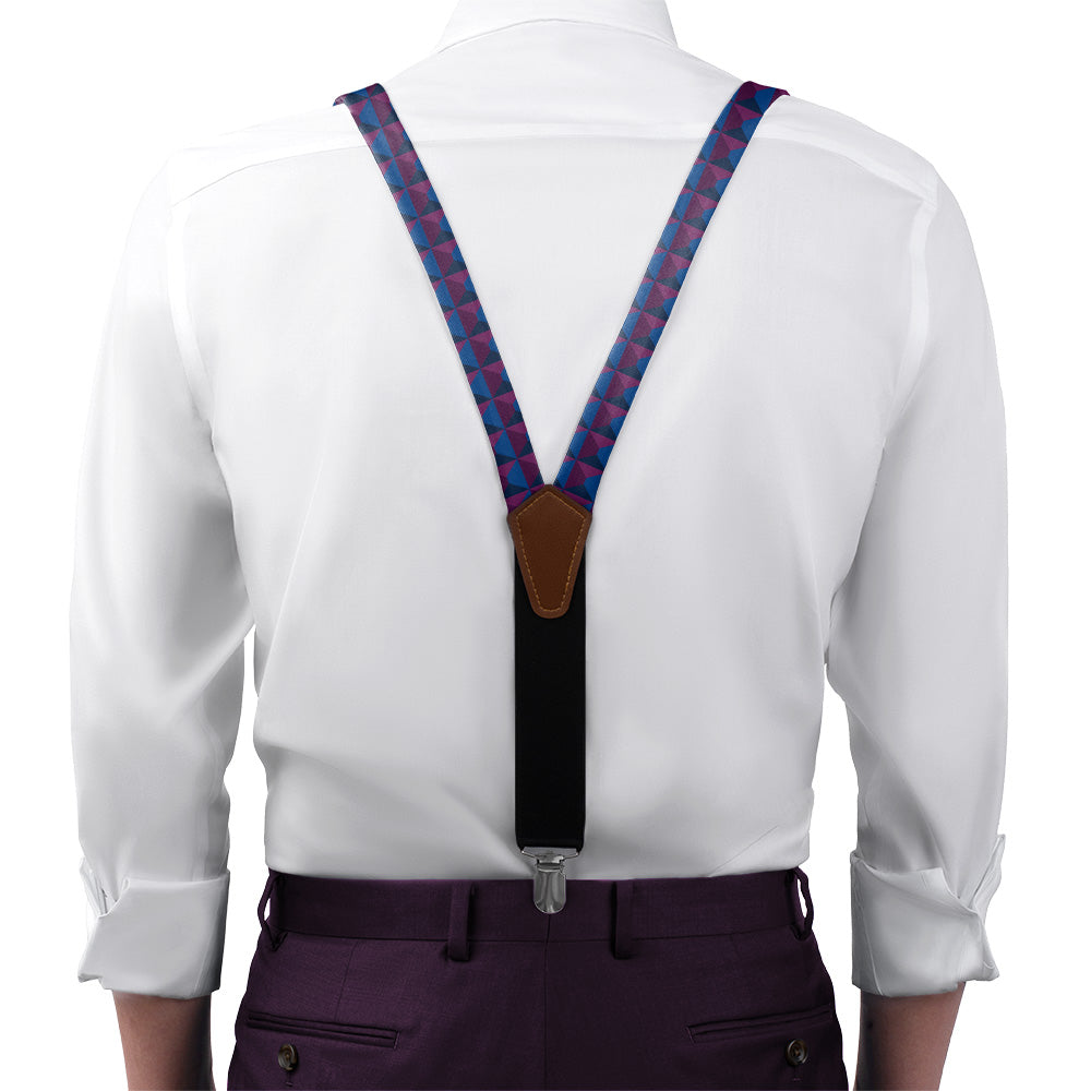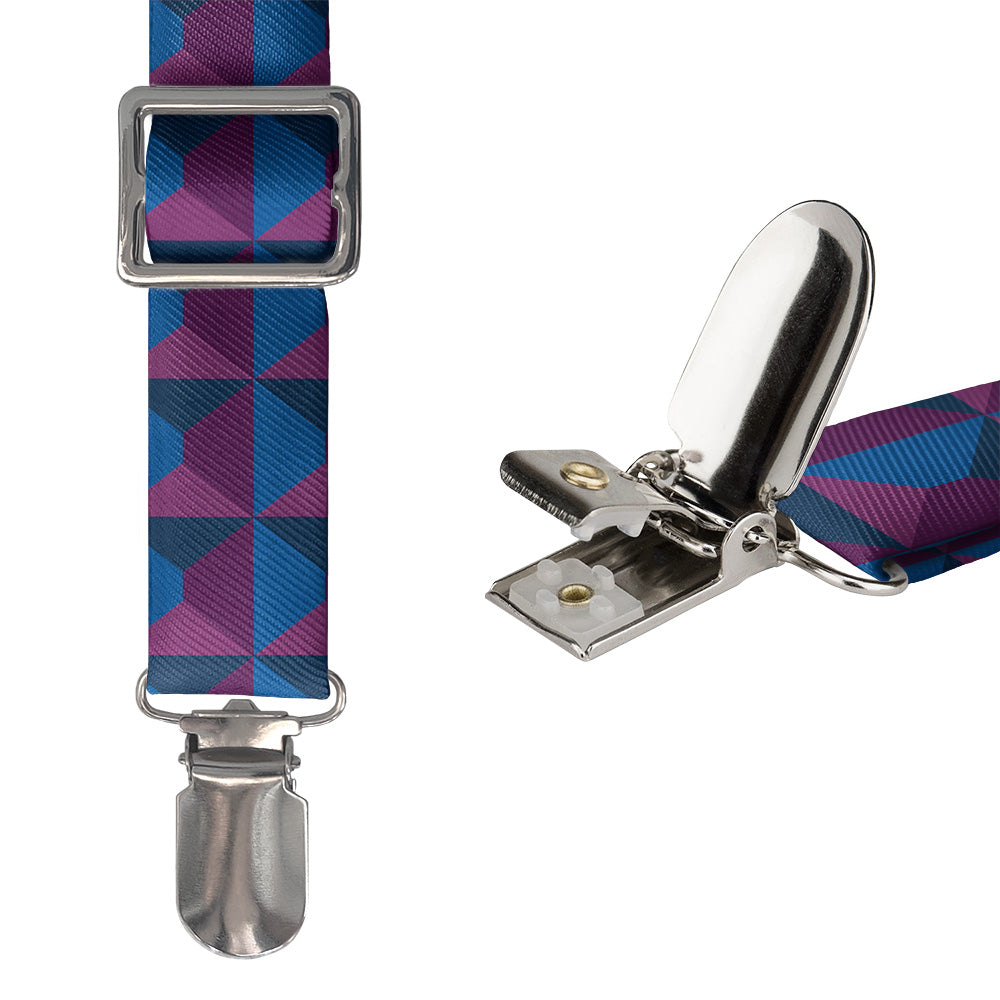 This repeating geometric pattern uses pyramid shapes to create depth and an eye-catching three dimensional effect. These Illusion Geometric suspenders can be customized in the four colors of your choice.