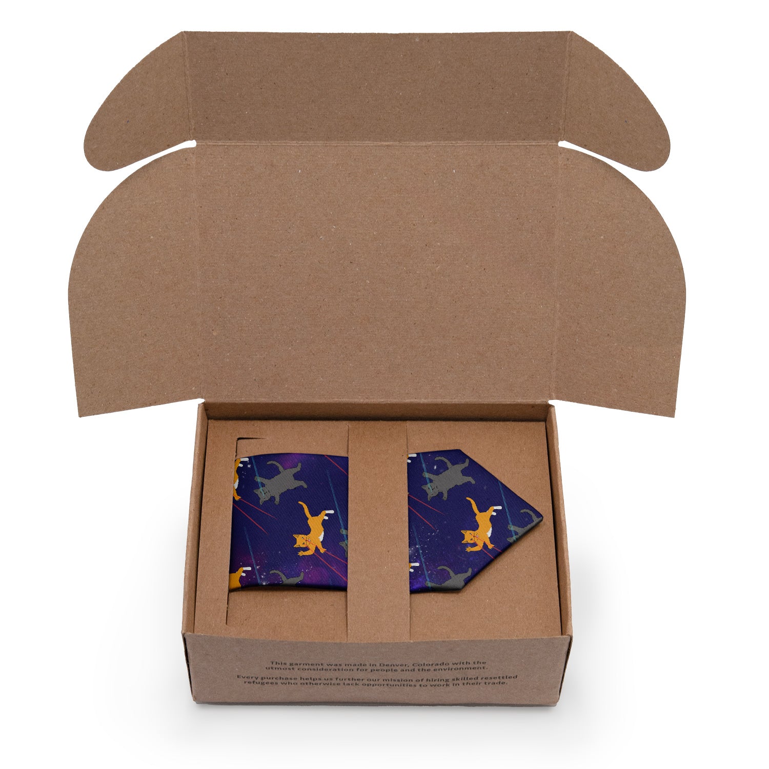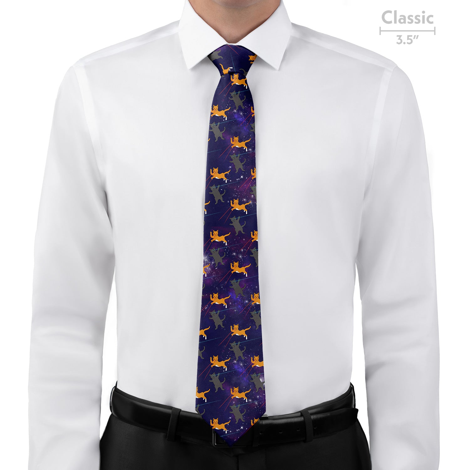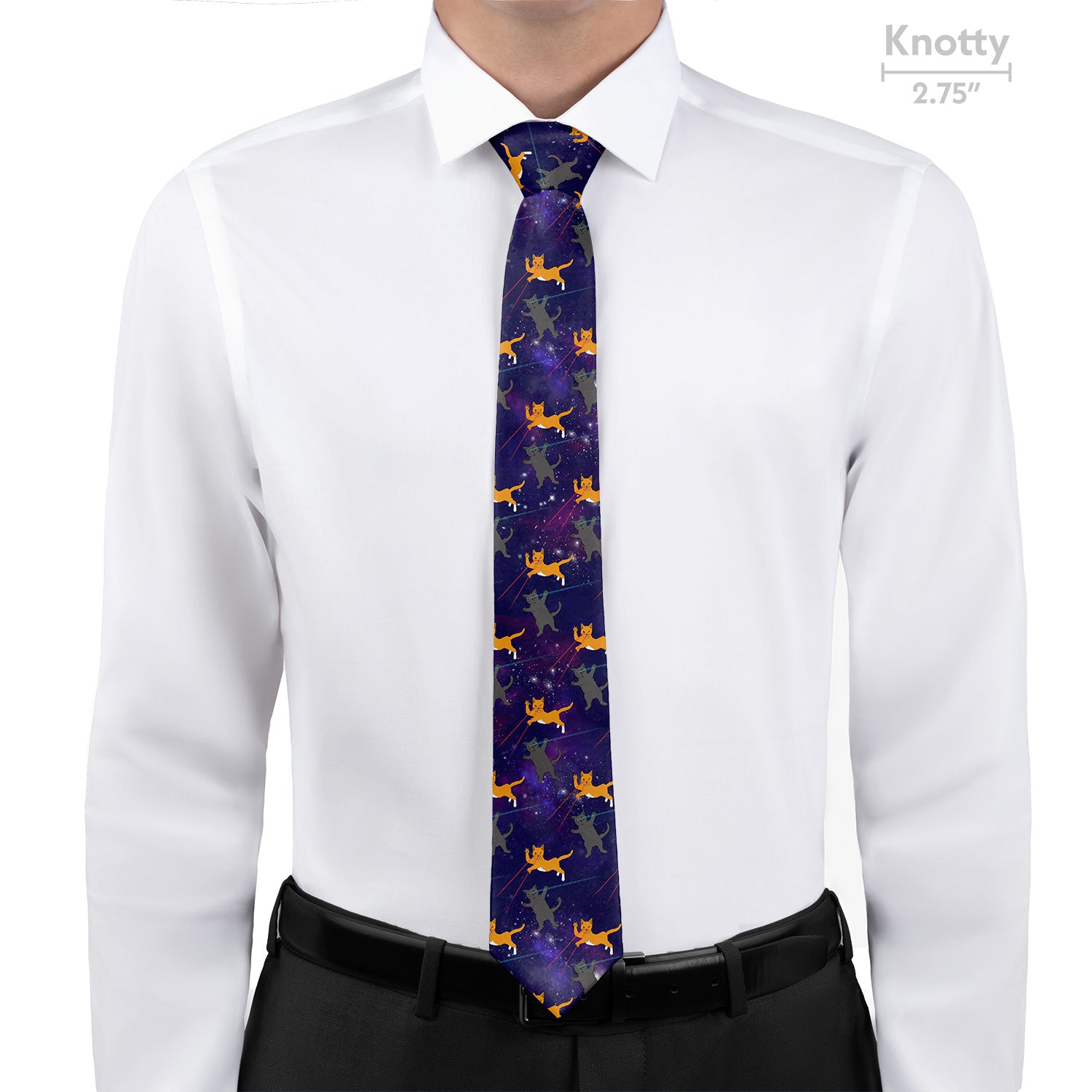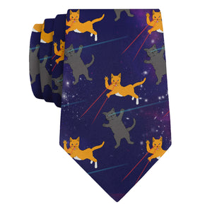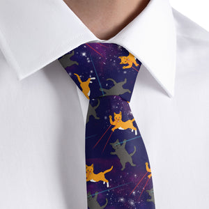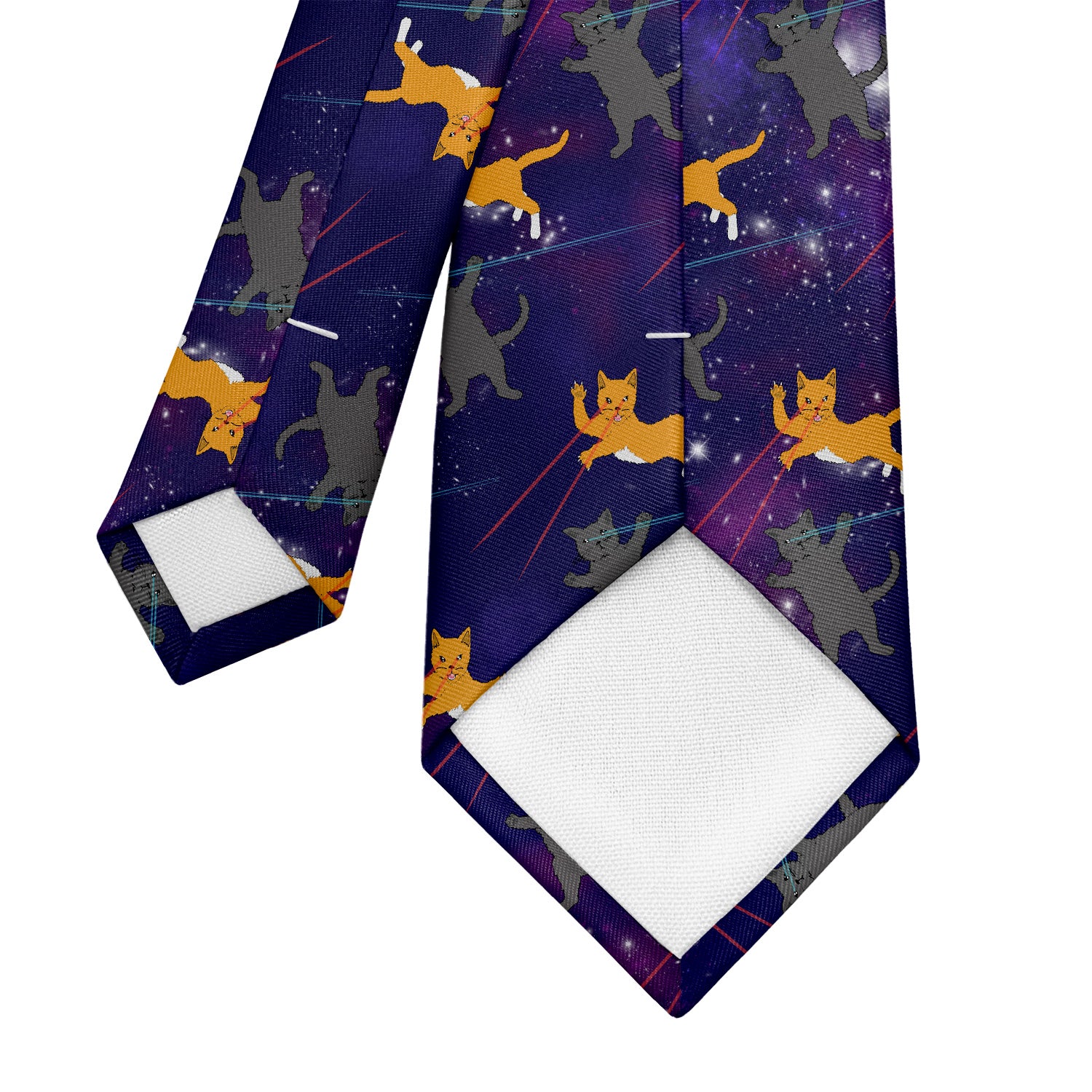 These fierce felines don't chase lasers – they shoot them from their eyes! With a playful galaxy print as their background, laser-shooting kitties frolic across this imaginative necktie. This eccentric pattern is an amazing conversation starter. Be prepared for double takes and delighted laughter when you wear this futuristic cats tie.