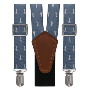 It may not help you navigate a rocky coastline, but the Lighthouse suspenders can lighten up your most formal navy jacket. The repeating lighthouse motif on these nautical suspenders makes a fun alternative to checks, while still appropriate for formal occasions.
