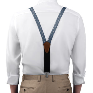 Printed fabric straps are 1-inch wide and secured to an elastic rear strap with vegan leather Y-back to allow the suspenders to move with you and extend as you bend. We use silver alligator pant clips that feature a special mechanism to ensure the suspenders clamp securely to pants.