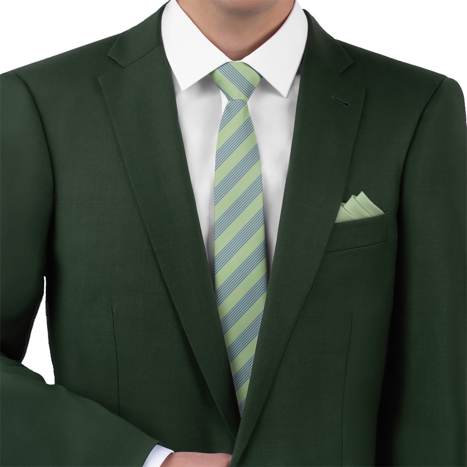 blue pocket square icon behind a white pocket square icon with blue diagonal stripes