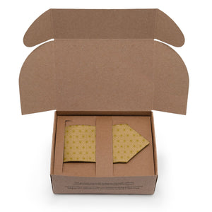 Sustainably sourced thoughtful packaging ready for gifting with 100% recycled and recyclable paper printed with vegetable inks.