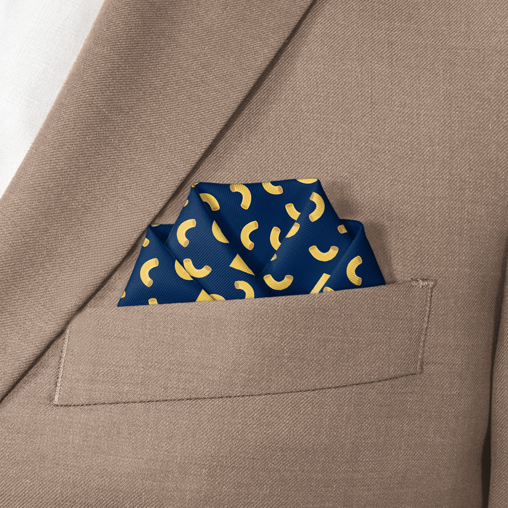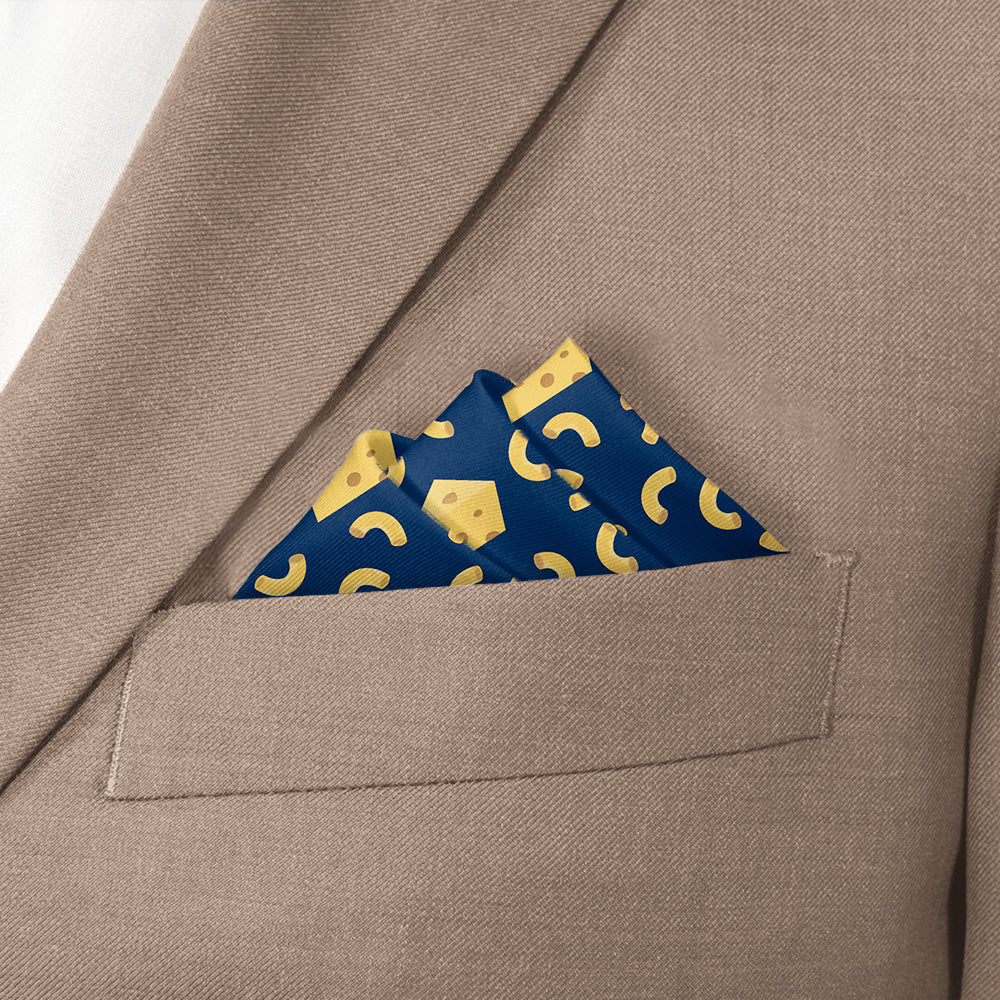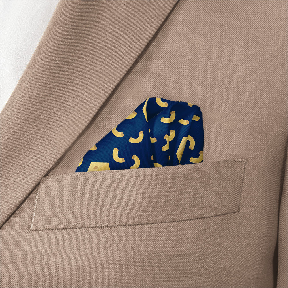 The Mac N Cheese Pocket Square combines playful design with expert craftsmanship, featuring a cozy, warm color scheme inspired by the classic comfort food. This unique accessory adds a charming yet sophisticated touch to your outfit, ideal for those who appreciate distinctive style with a gentle nod to nostalgia.
