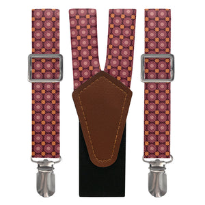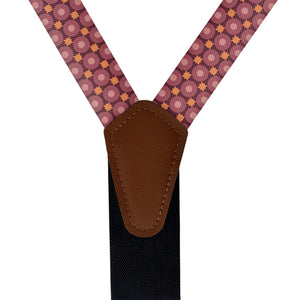 Printed fabric straps are 1-inch wide and secured to an elastic rear strap with vegan leather Y-back to allow the suspenders to move with you and extend as you bend. We use silver alligator pant clips that feature a special mechanism to ensure the suspenders clamp securely to pants.