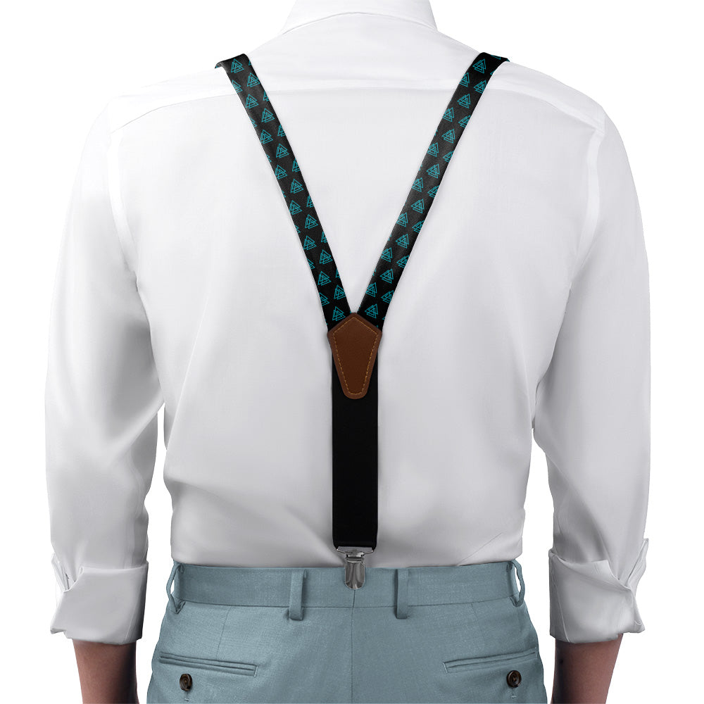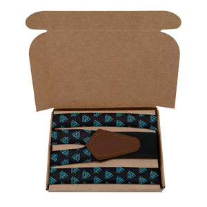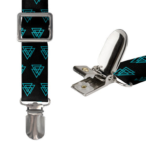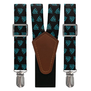 Reminiscent of the Memphis Design Movement of the 1980s which combined Art Deco shapes with Pop Art colors and a sprinkling of 1950s kitsch. The Mod Triangles suspenders are customizable in color so you can complete any outfit.