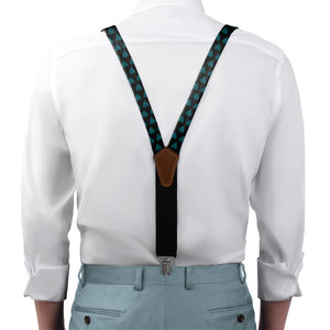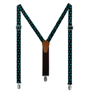 Printed fabric straps are 1-inch wide and secured to an elastic rear strap with vegan leather Y-back to allow the suspenders to move with you and extend as you bend. We use silver alligator pant clips that feature a special mechanism to ensure the suspenders clamp securely to pants.