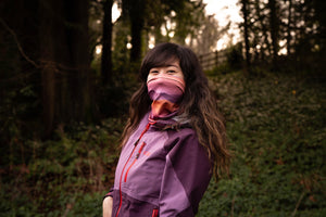 Carry the beauty of a Rocky Mountain sunset with you all day long when you wear our Mountain Sunset neck gaiter.
