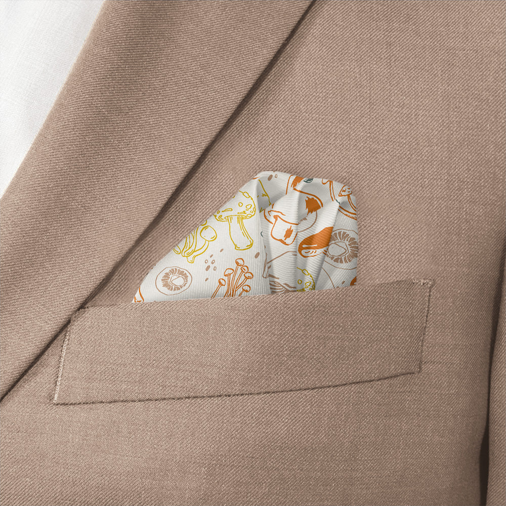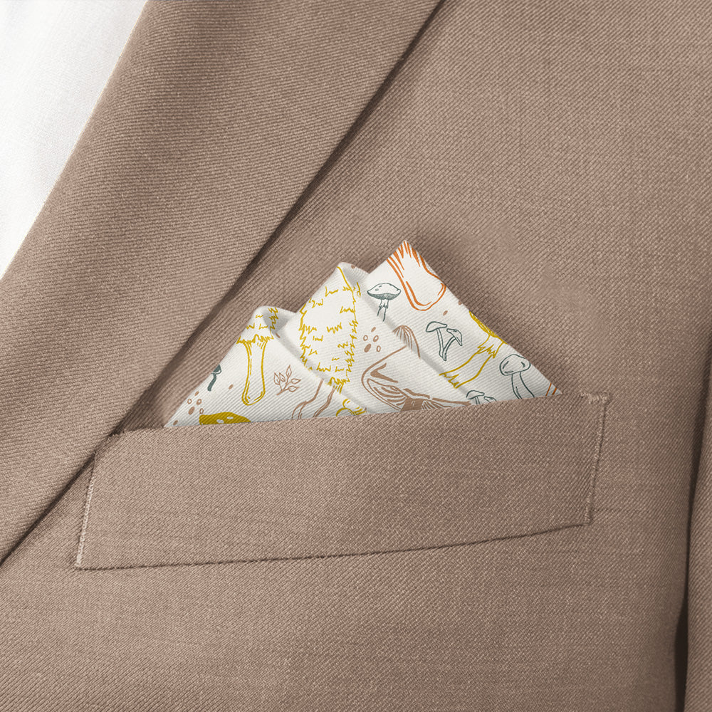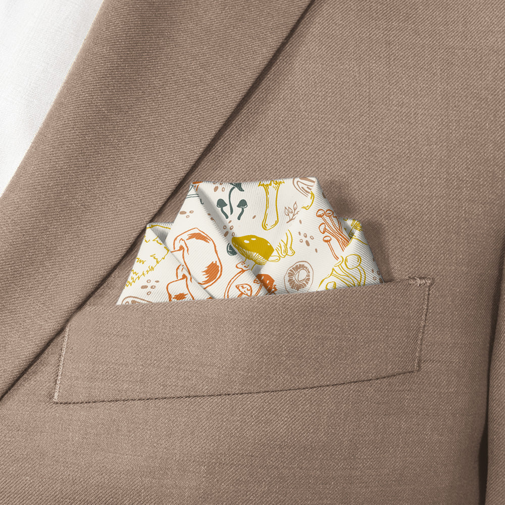 Our Mushrooms pocket square invites you into the enchanting and diverse world of fungi. Featuring a diverse array of mushrooms, including enoki, porcini, amanita muscaria, chanterelles, this mushroom tie makes a unique and thoughtful gift for nature enthusiasts, mycologists and shroom lovers.